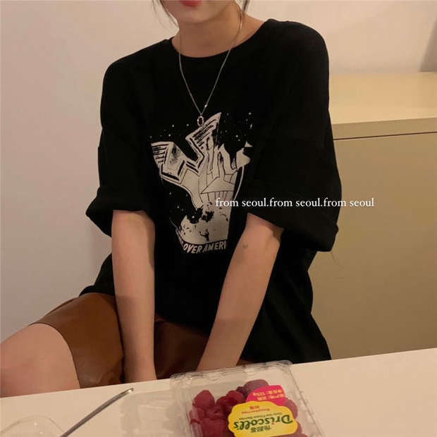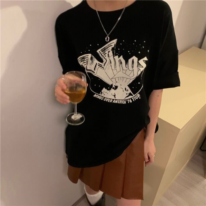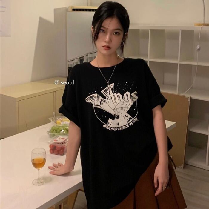 ブラックシャツ ルーズTシャツ オータムウィンタートップス 秋物 冬物 モンロー58262951083