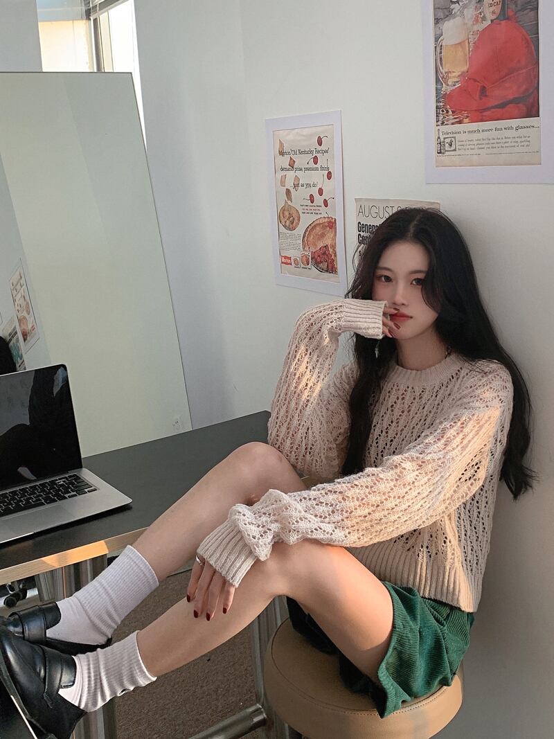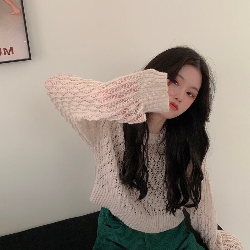 シャツ スタイルルーズニットショートトップス スプリング 春物 モンロー2297895399