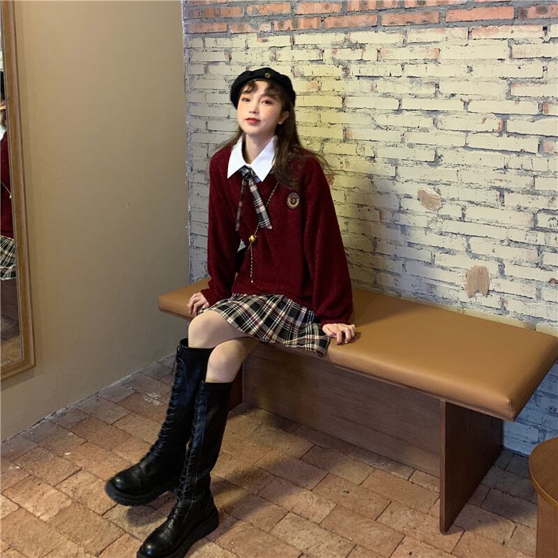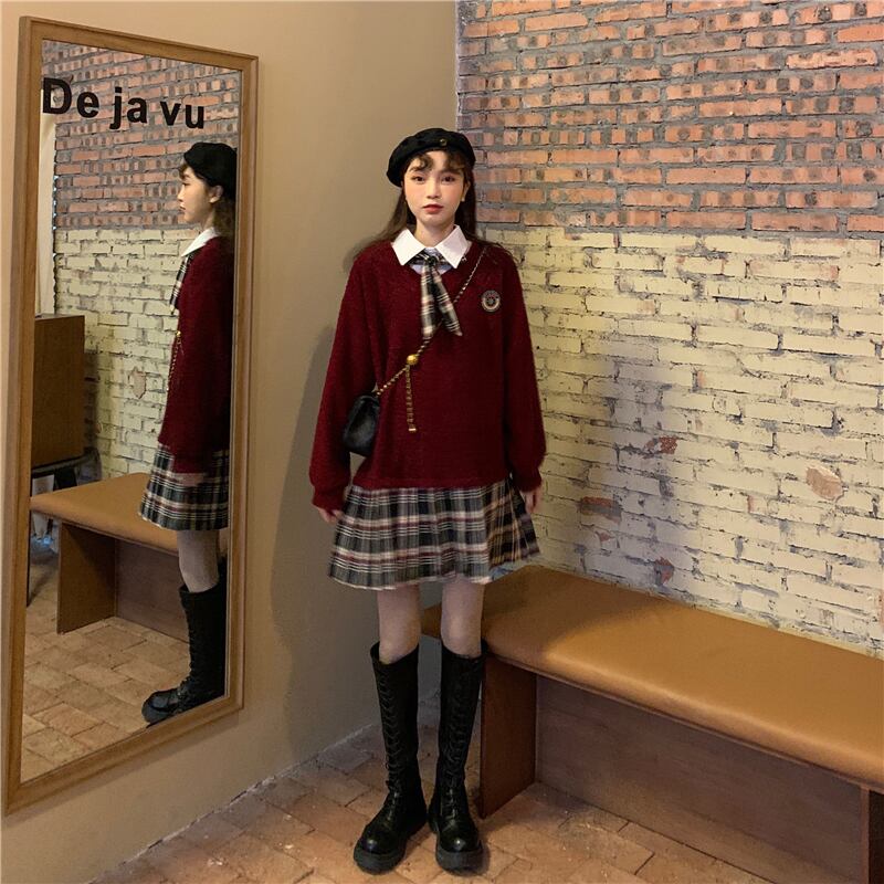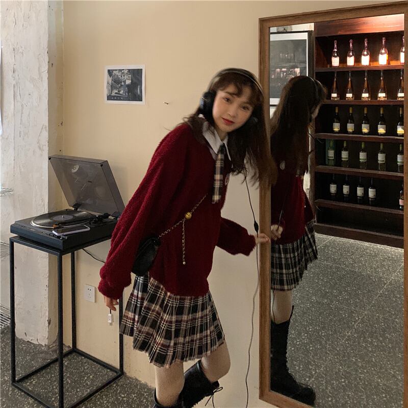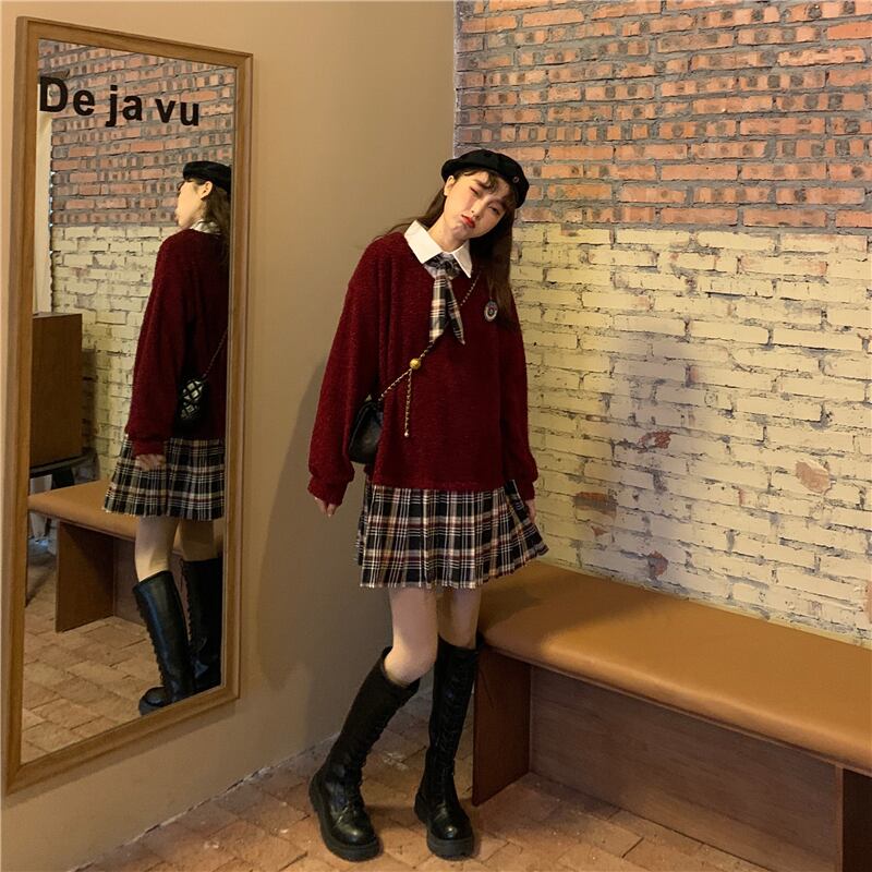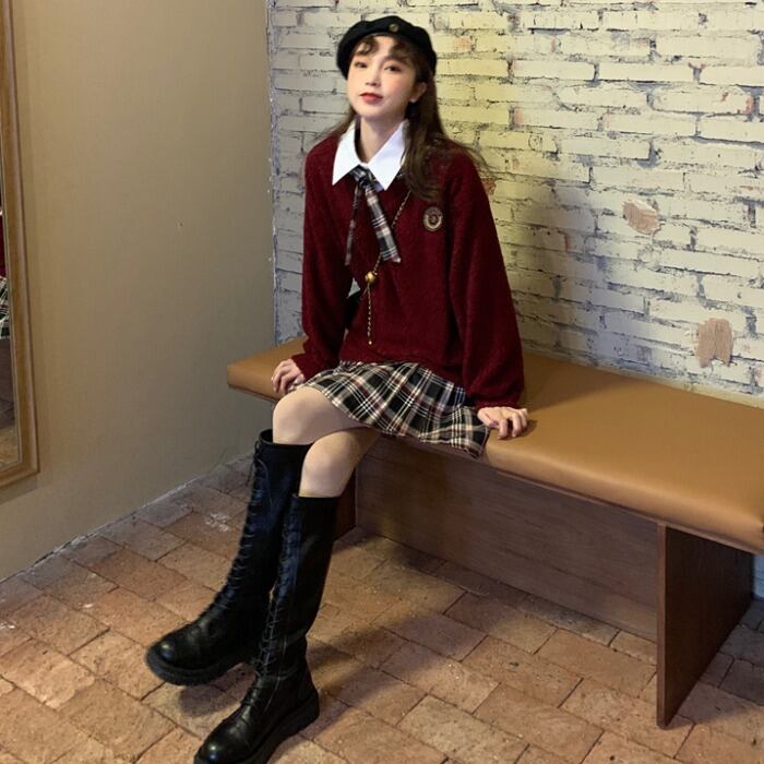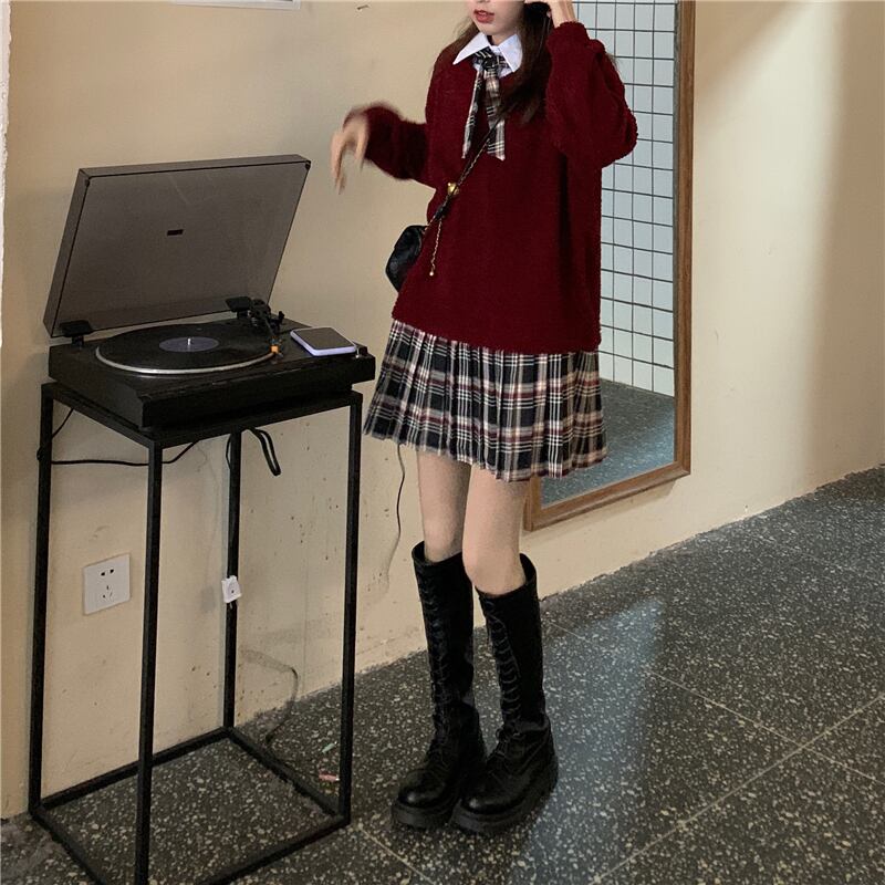 格子柄ドレス オータムウィンターショートスカート Aラインプリーツ 秋物 冬物 モンロー37600096683