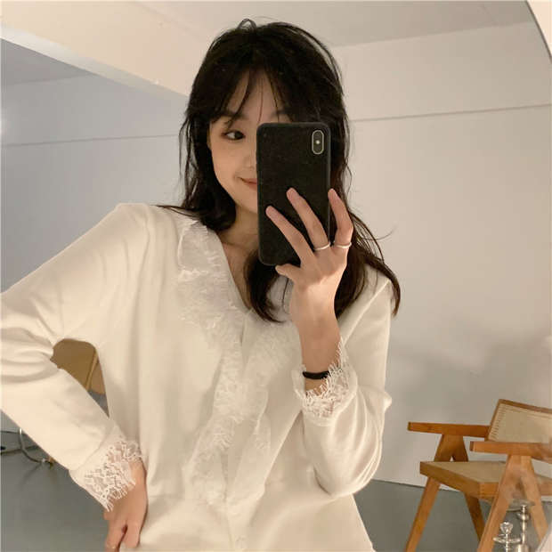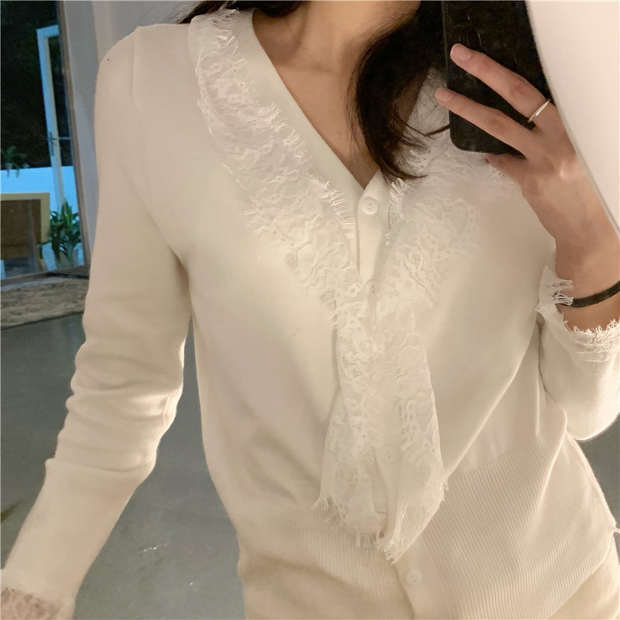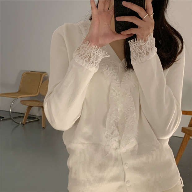 ホワイトシャツ セーター コート オータムウィンタースタイルVネックニットカーディガンクロップドトップス 秋物 冬物 モンロー45816191835