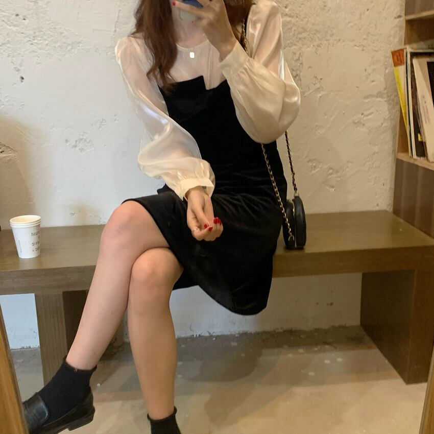 ベルベットドレス レディーススタンダードスタイルブラックオータムウィンタースカート ショート レトロ 秋物 冬物 モンロー11089387011