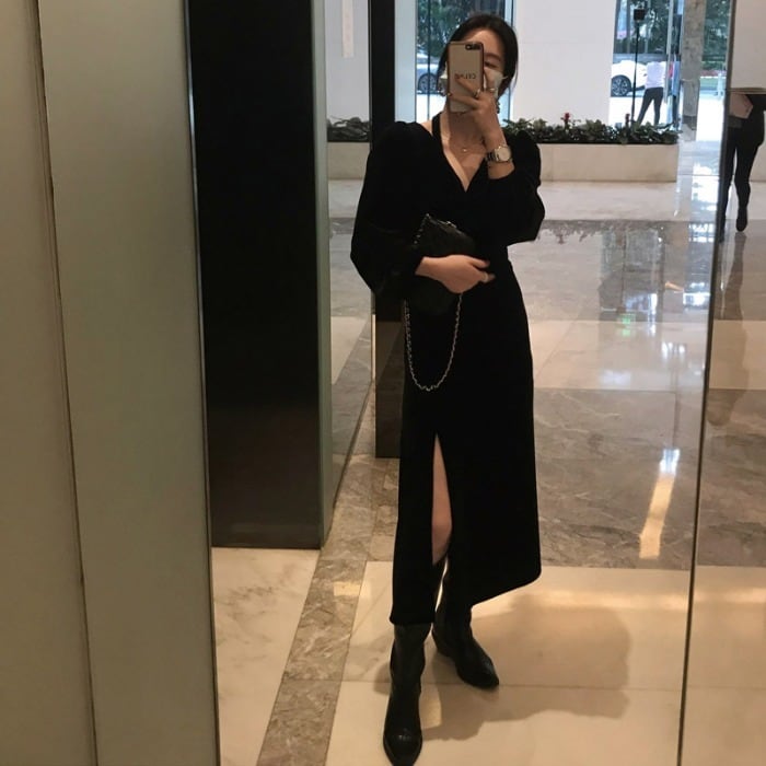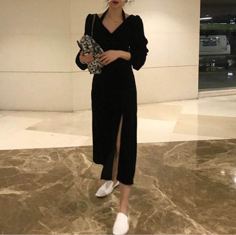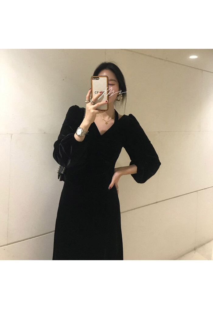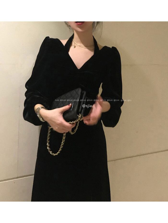 ブラックドレス スタイルベルベットオータムウィンタースカート ホルターロング 秋物 冬物 モンロー93720537974