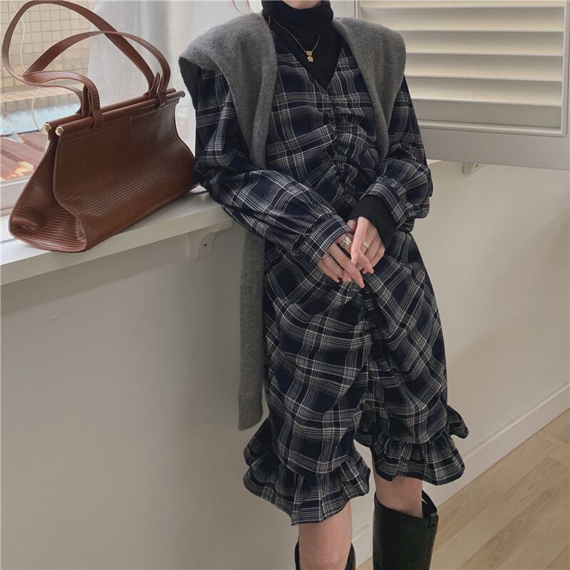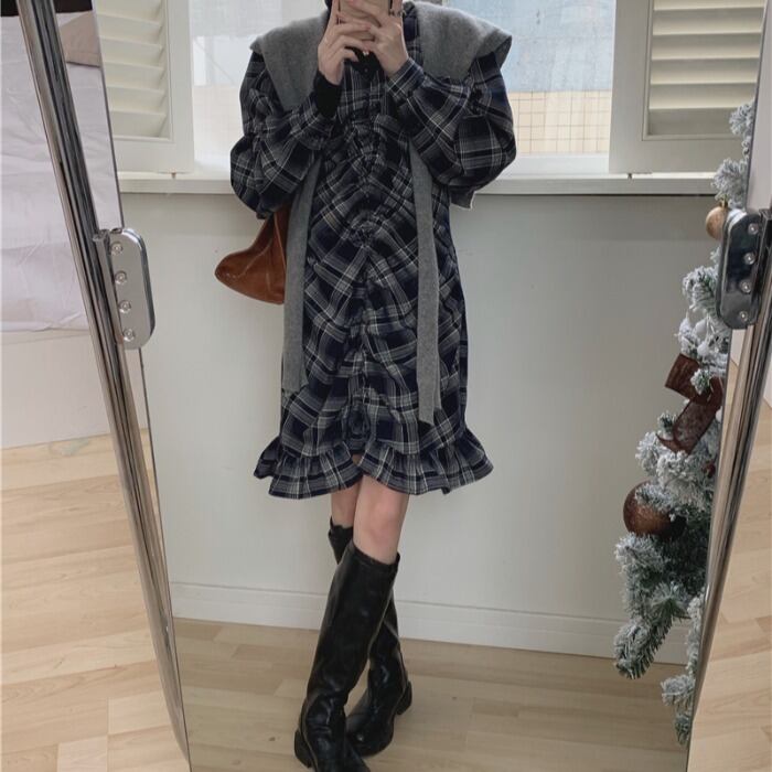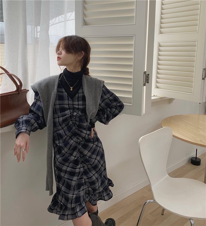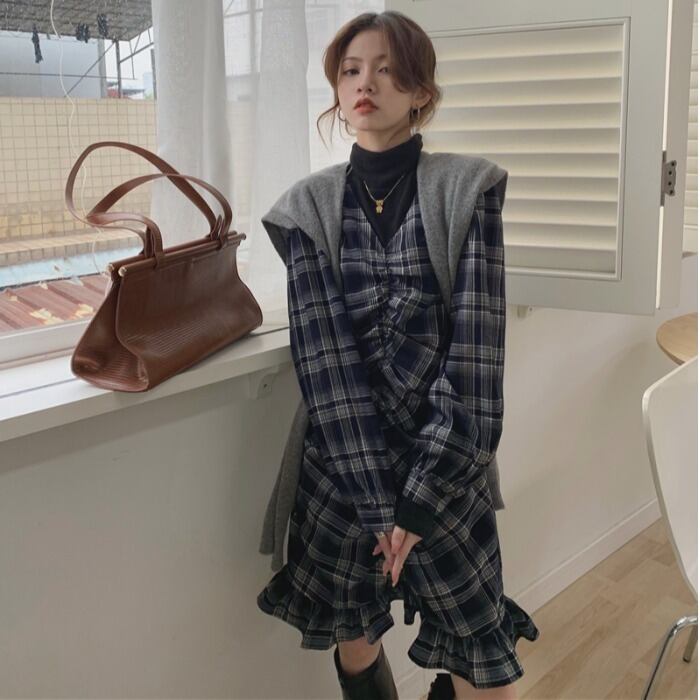 格子柄ドレス スタンダードスカート スタイルウェストショート レトロ モンロー63462328494