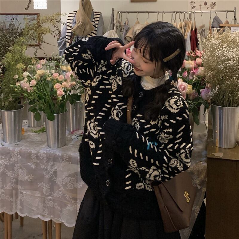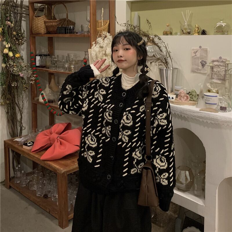 セーター レディースルーズカーディガンオータムウィンタースタンダードジャケット コート レトロ 秋物 冬物 モンロー81946739375