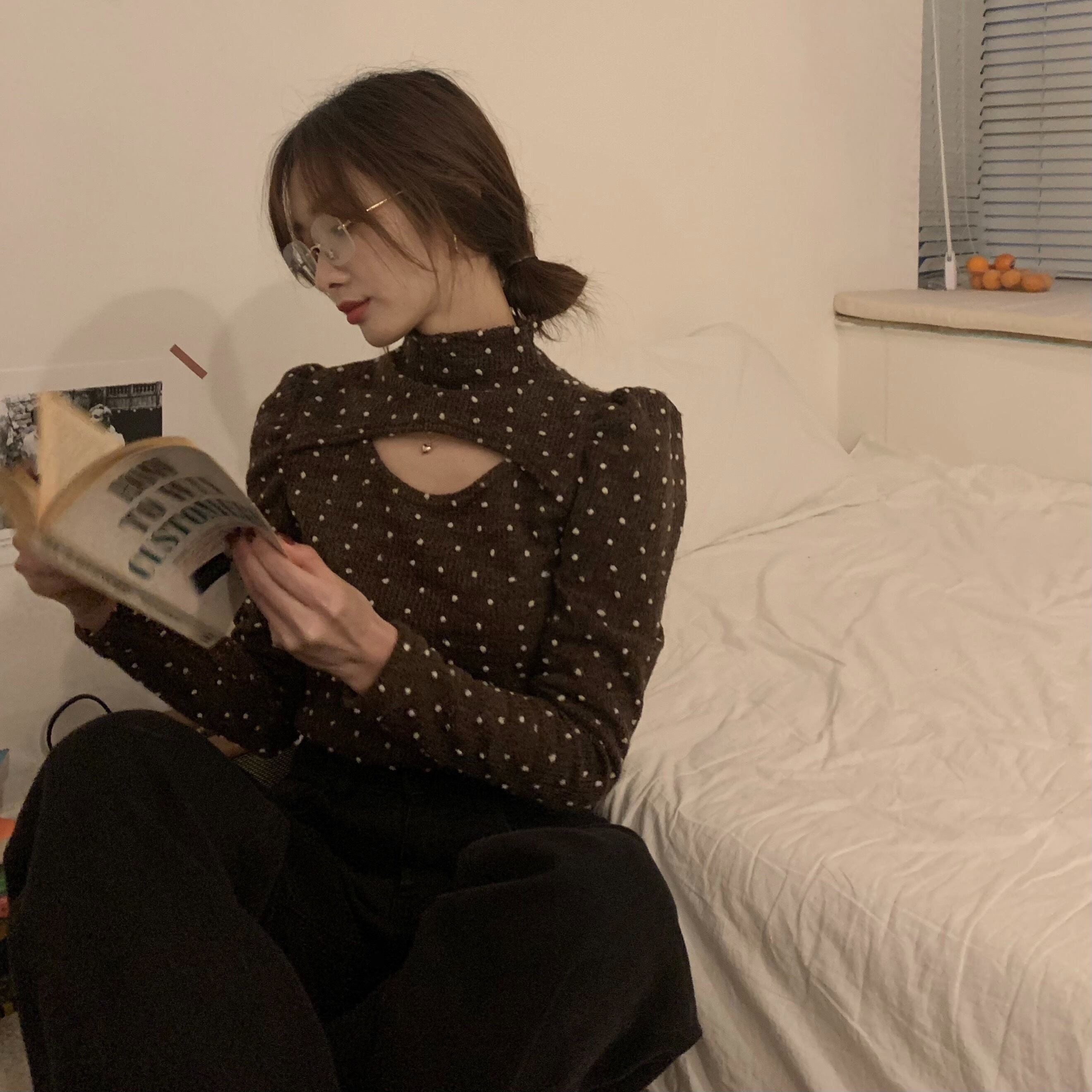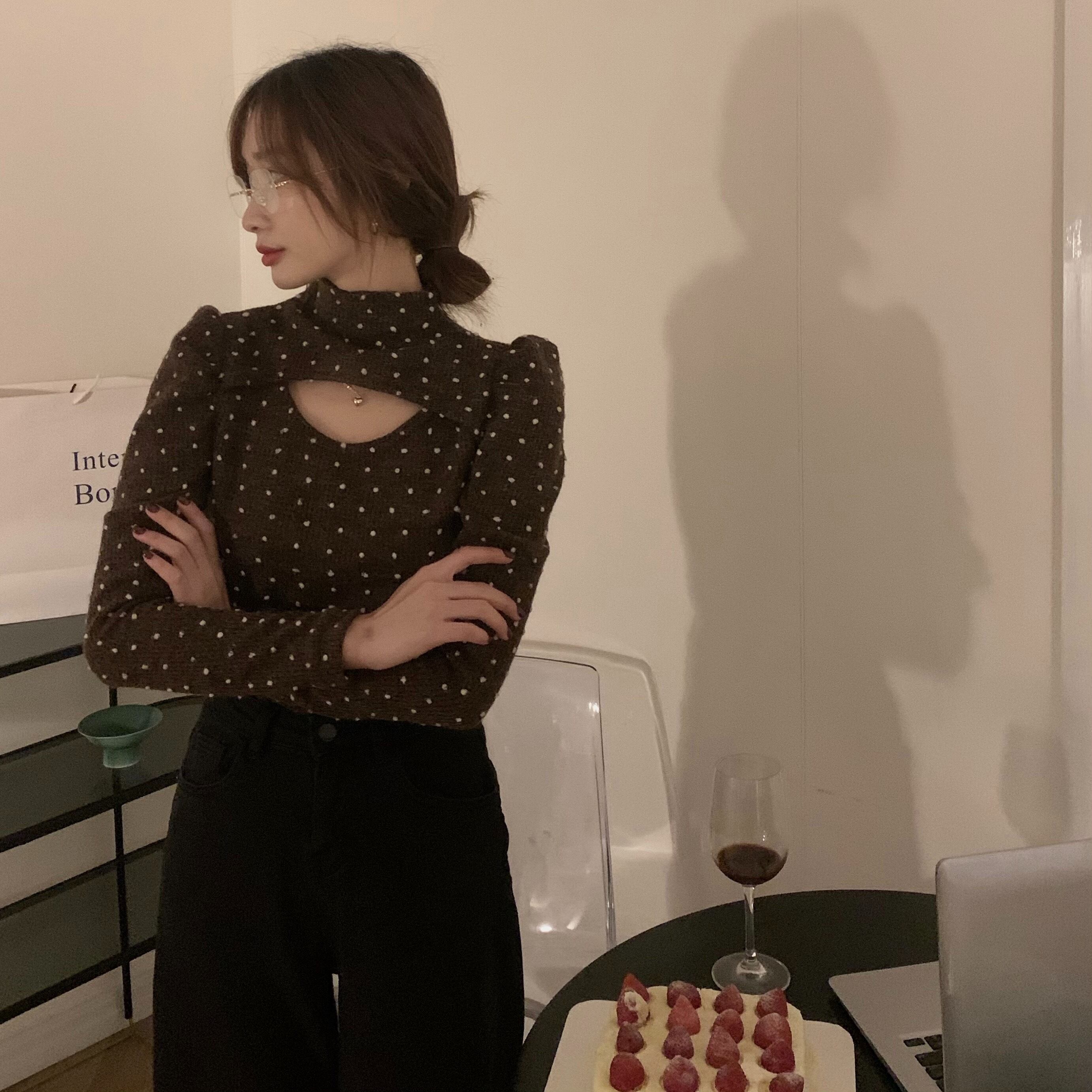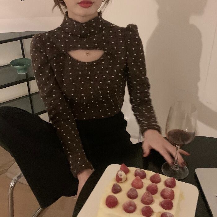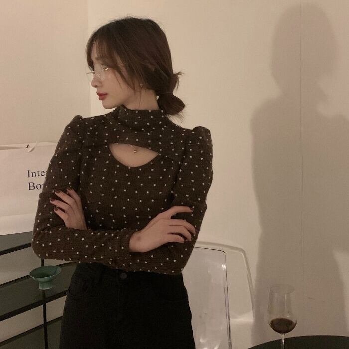 水玉Tシャツ シャツ レディーススプリングスリムショートトップス ロング 春物 モンロー97808231390