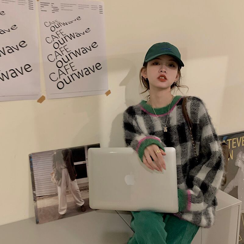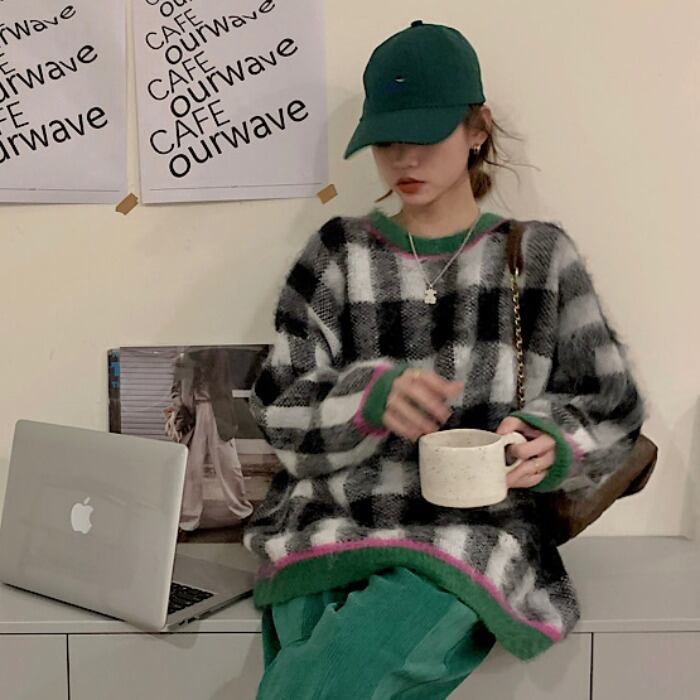 格子柄セーター ニットスタイルスタンダードジャケット コート レトロ ウィンター 冬物 モンロー47945214127