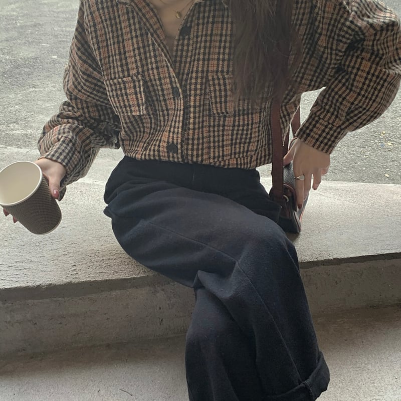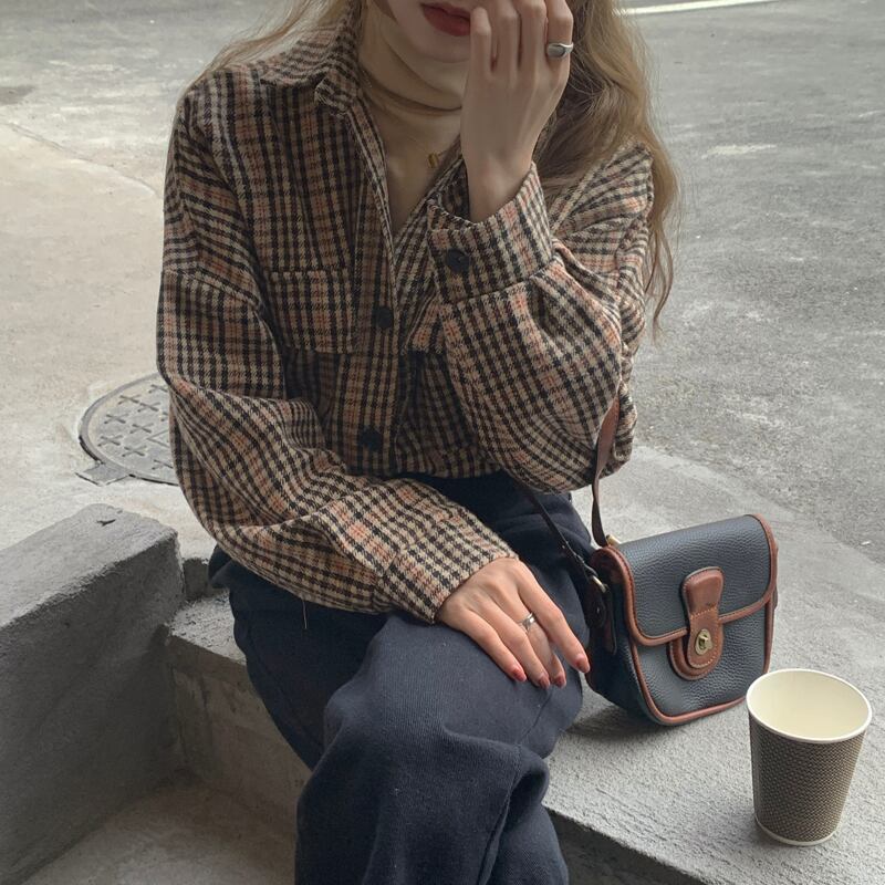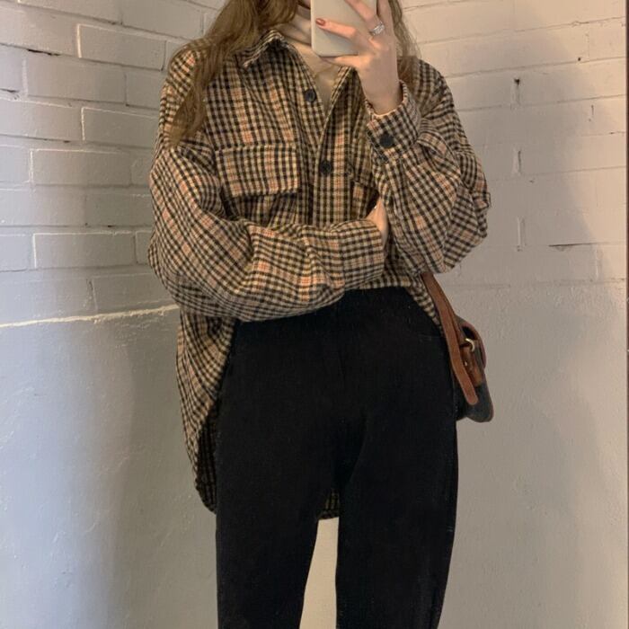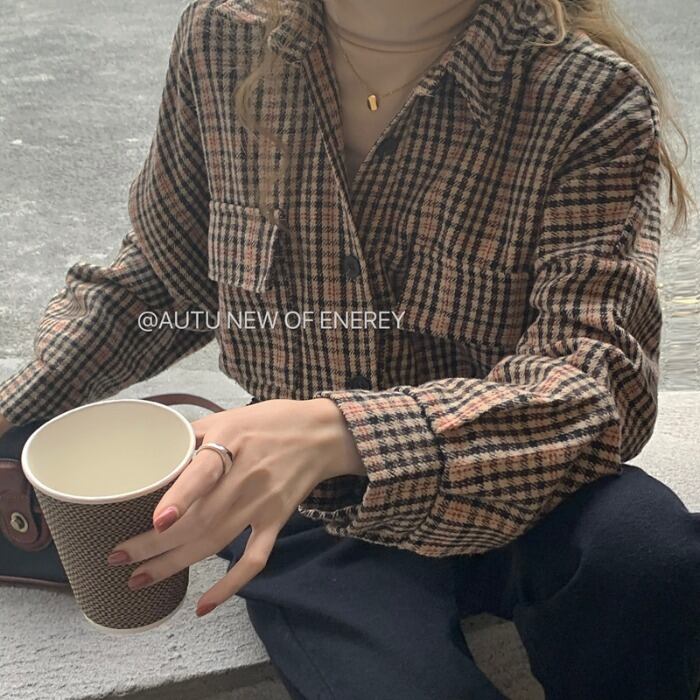 スタンダード格子柄シャツ オータムウィンタールーズブラウス ジャケット ロング レトロ 秋物 冬物 モンロー84792868838