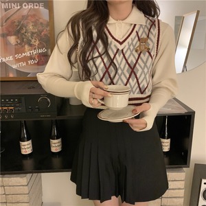 スタンダードVネックニットセーター スタイルショートノースリーブジャケット レトロ 半袖 ハーフスリーブ モンロー10925191810