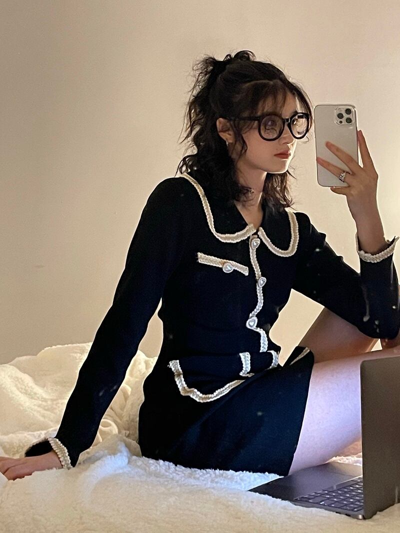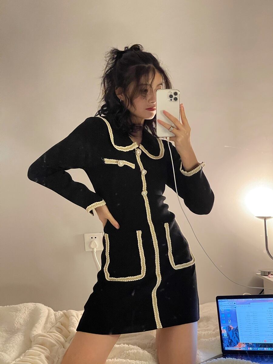 スタンダードドレス スタイルブラックスプリングスカート ウェストショート ロング レトロ 春物 モンロー56097742921