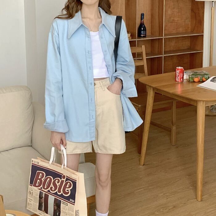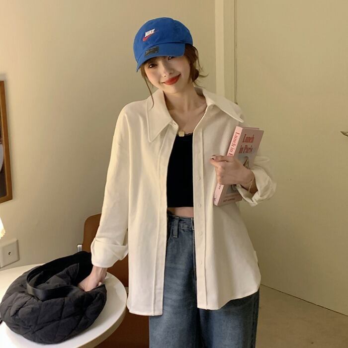 ホワイトシャツ トップス スプリングロングシャツジャケット 春物 モンロー7520479486