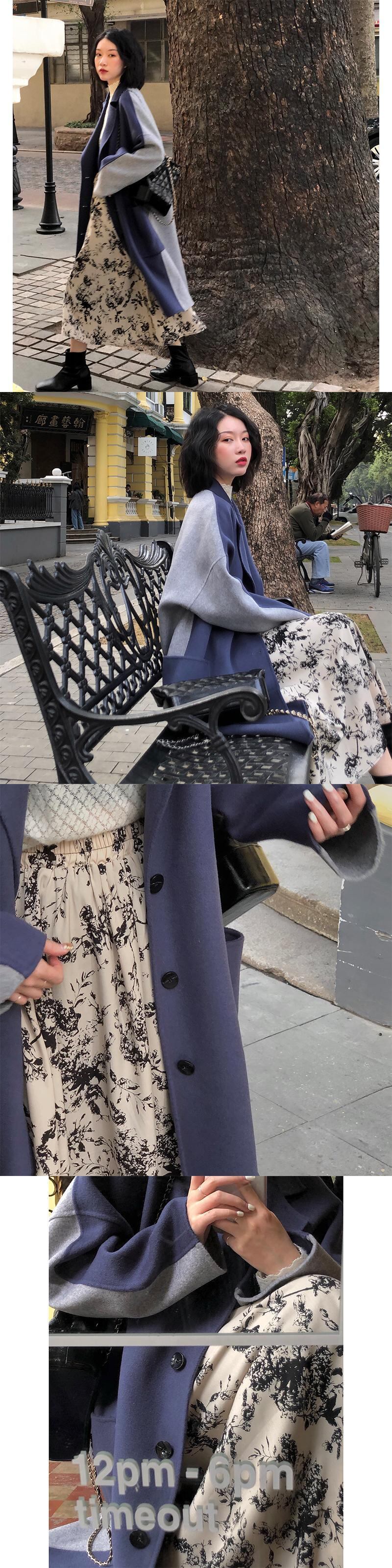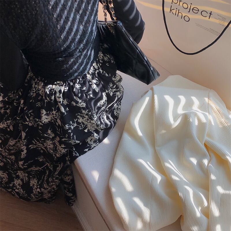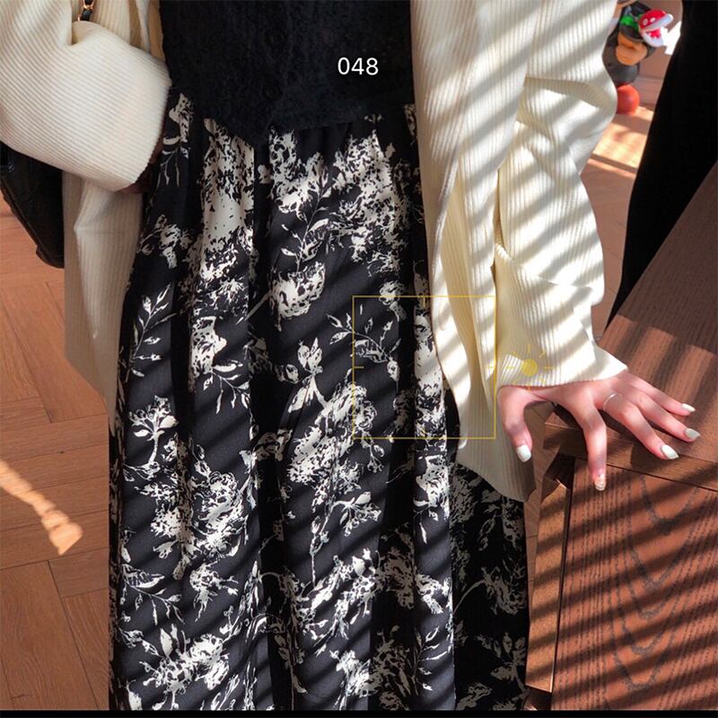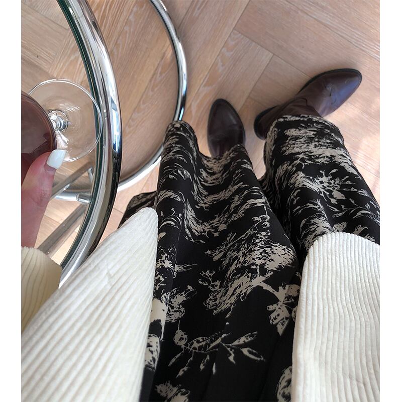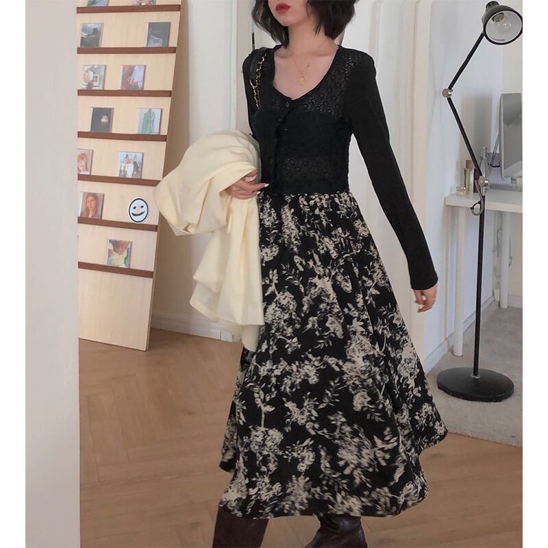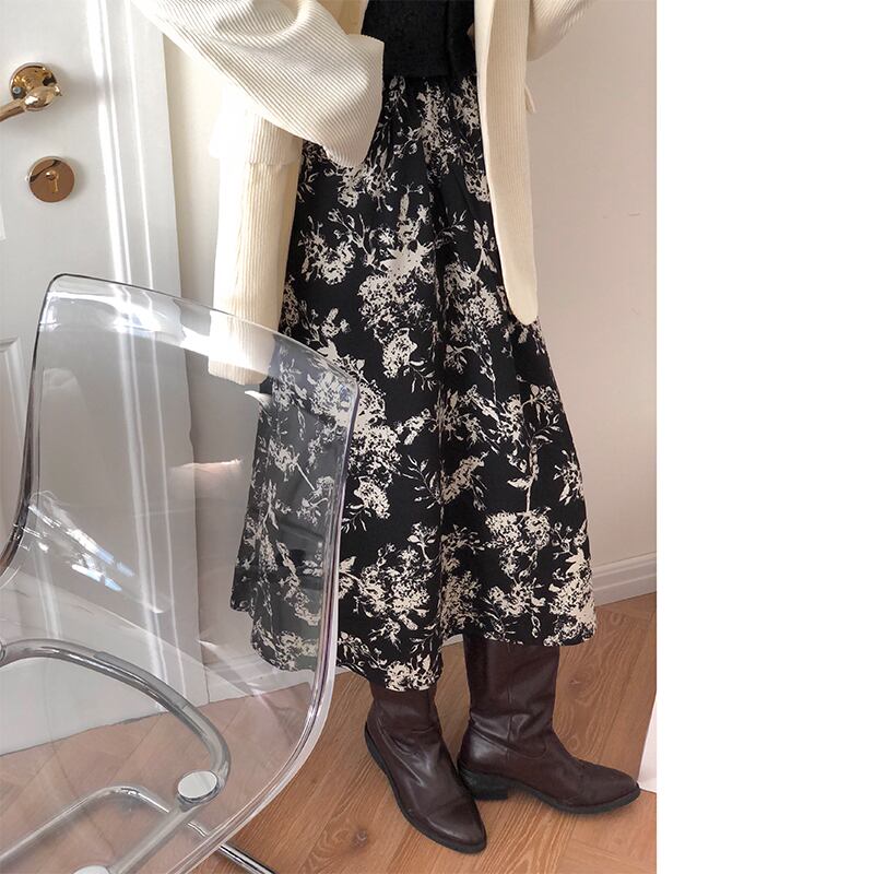 スタンダードフローラルスカート ハイウェストウェストAラインオータムウィンターセーター ロング レトロ 秋物 冬物 花柄 モンロー26676821942