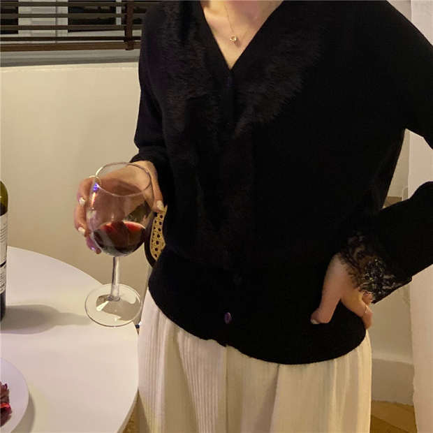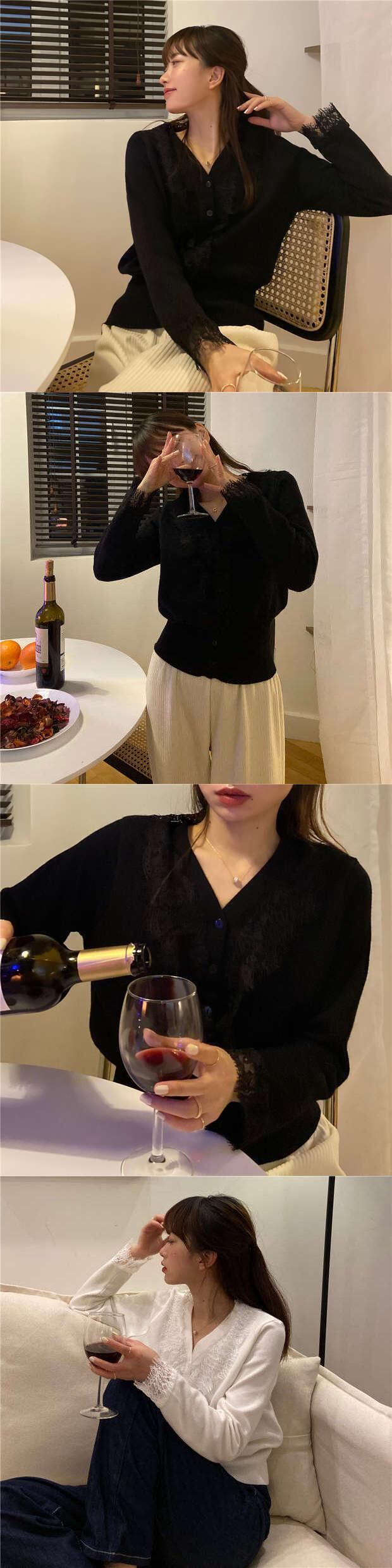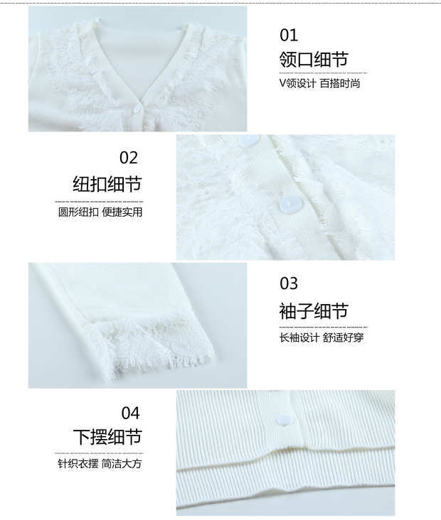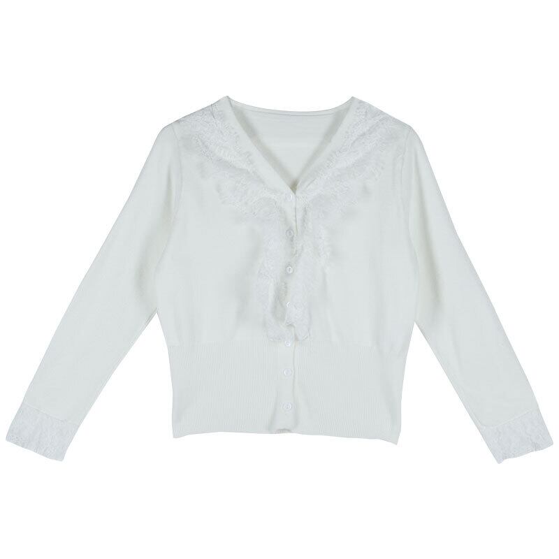 ホワイトレースブラウス シャツ スプリングVネック長袖スリーブショートジャケット ロング 春物 モンロー1550919717