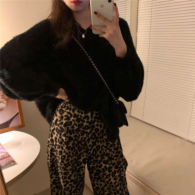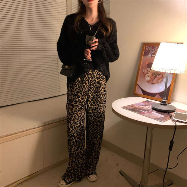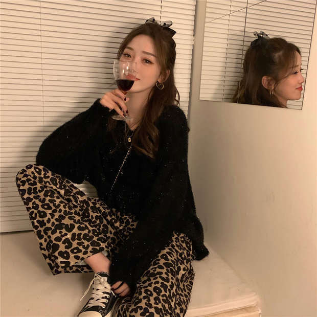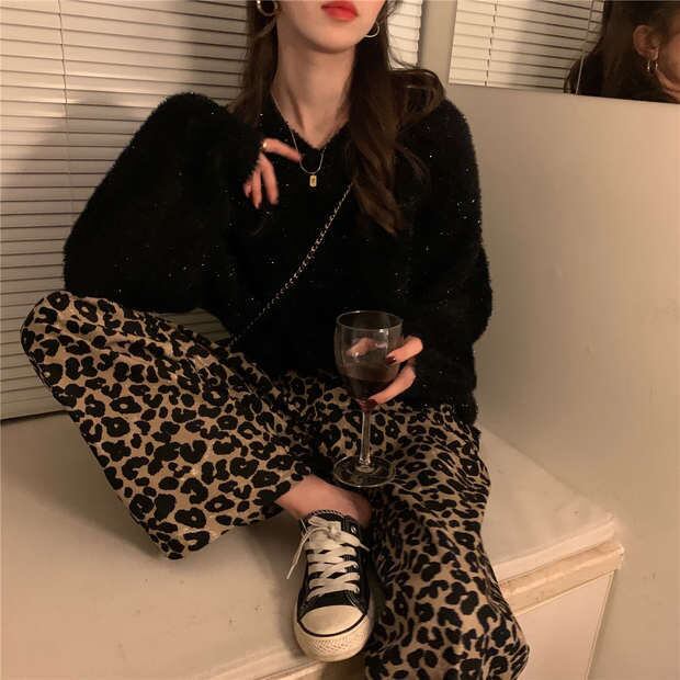 色:セーター,ヒョウパンツ