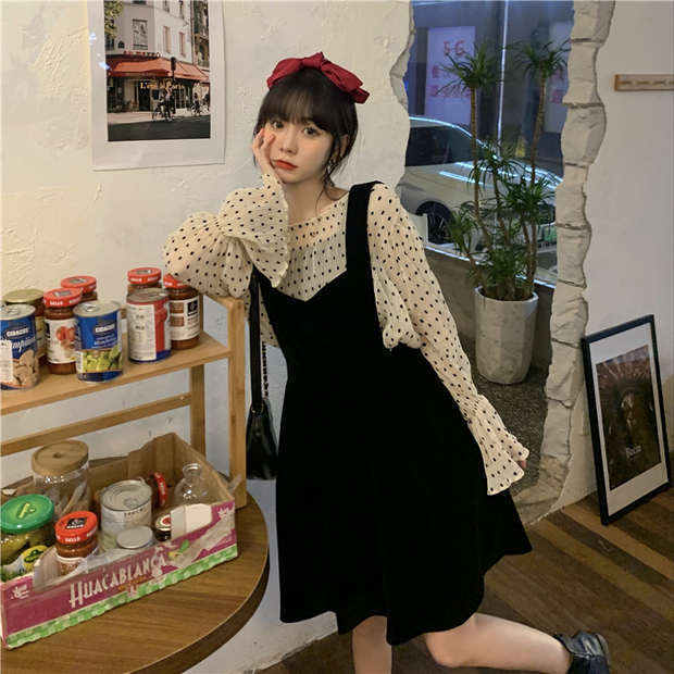 スプリングブラックドレス スカート ショート 大人ガーリー スウィート キュート カジュアル 春物 モンロー12529119101