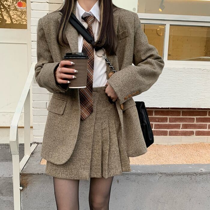 色:コート11000,スカート11001,白いシャツ10869,白いシャツ+ネクタイ10869