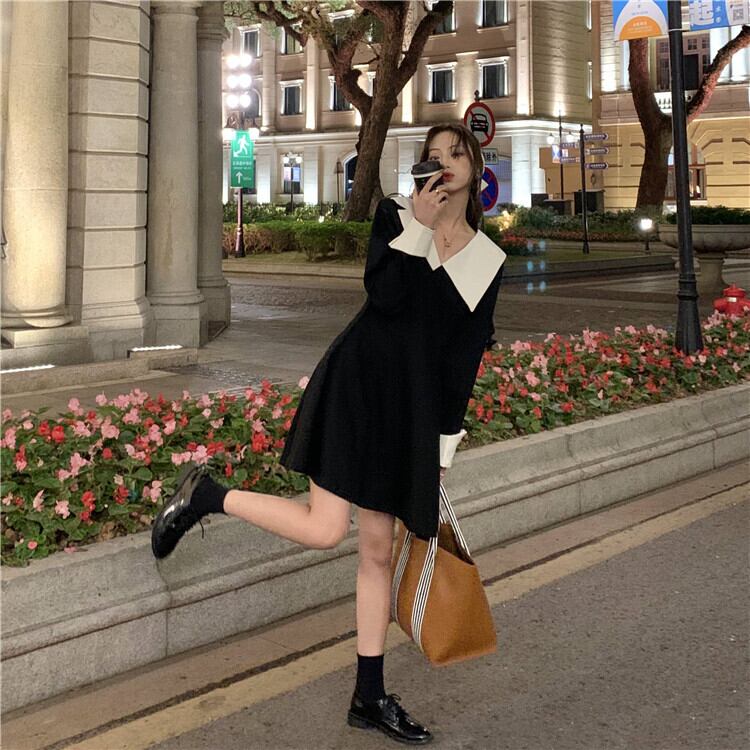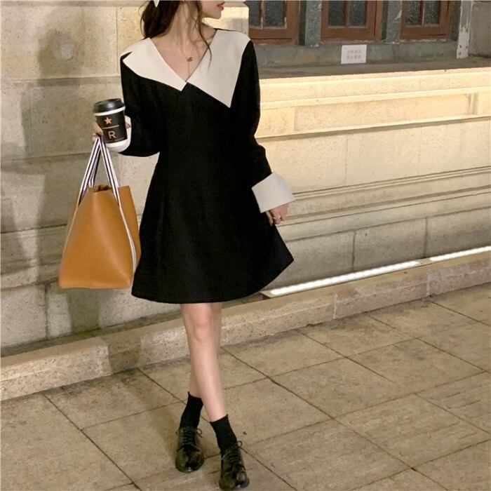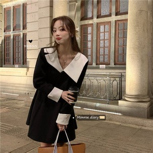 スタンダードドレス スタイルオータムウィンターAラインスカート ウェスト薄手ブラック レトロ 秋物 冬物 モンロー93203801431