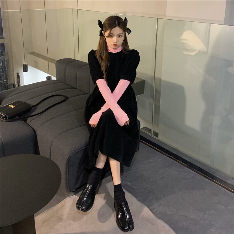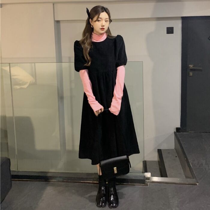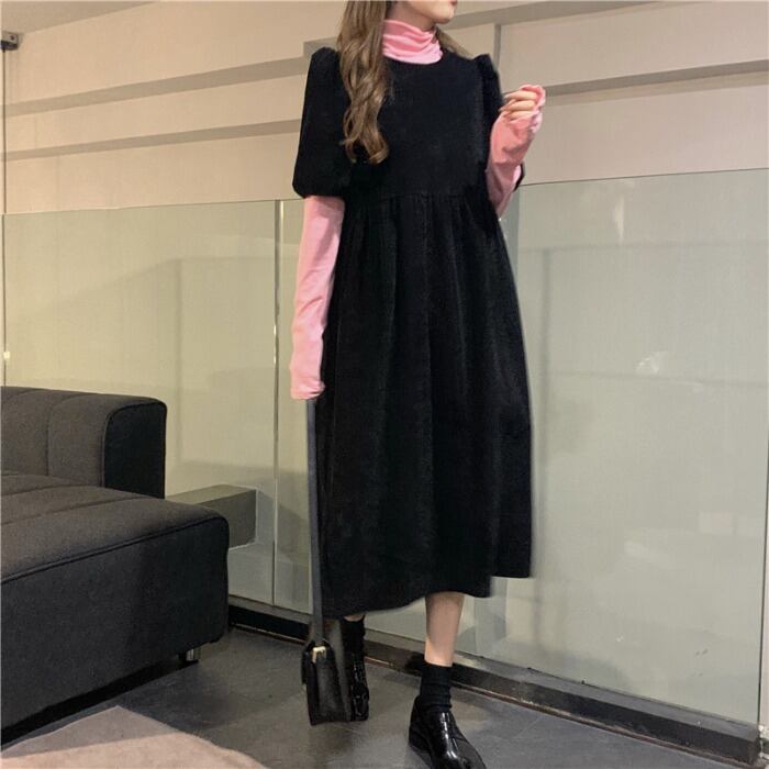 スタンダードスカート ドレス オータムウィンターブラックロングAライン レトロ 秋物 冬物 モンロー28344086432