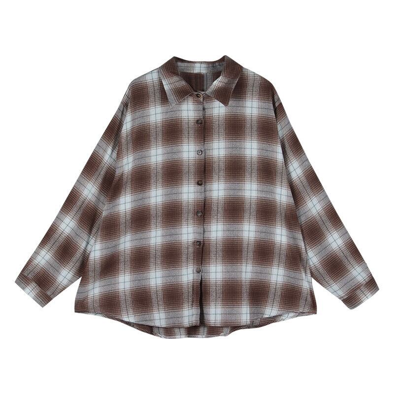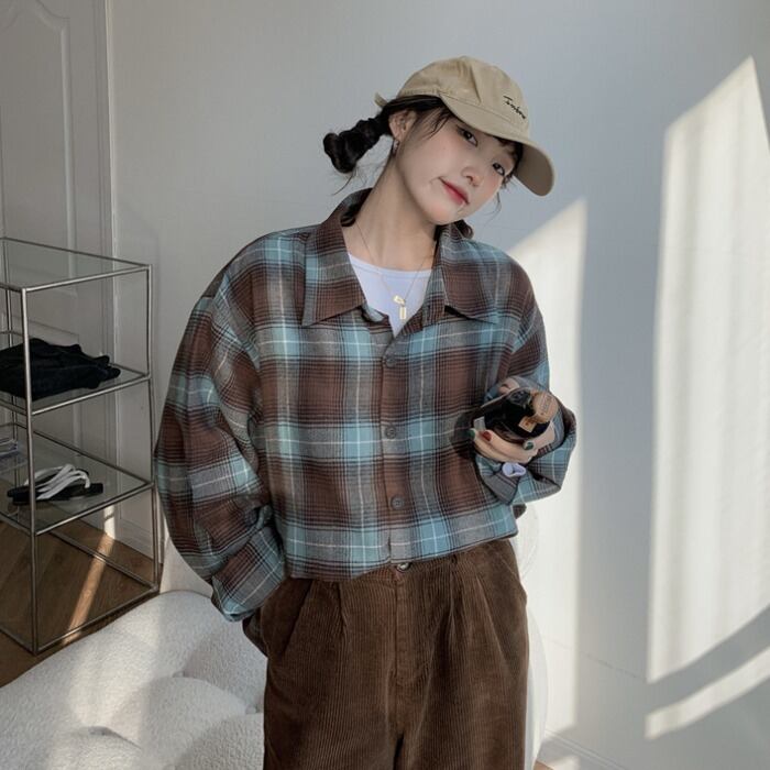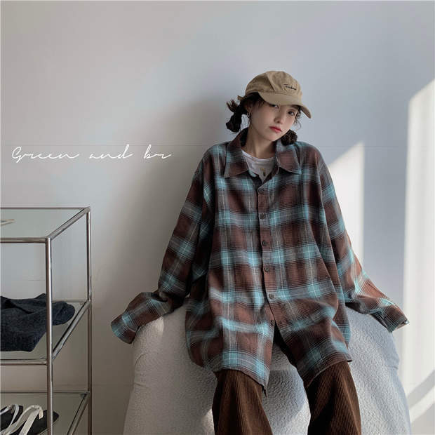 スタンダード格子柄シャツ オータムウィンタージャケット トップス ロング レトロ 秋物 冬物 モンロー40639069384