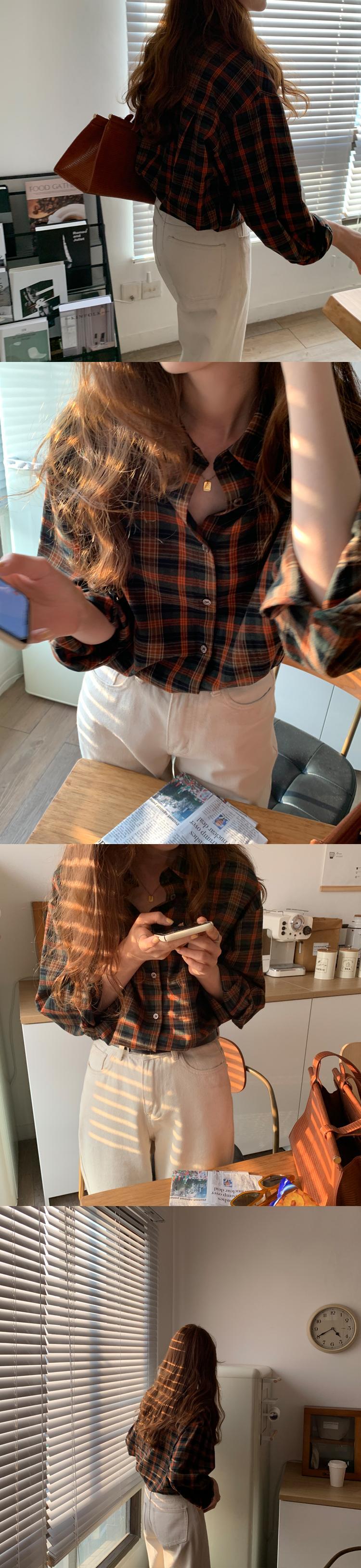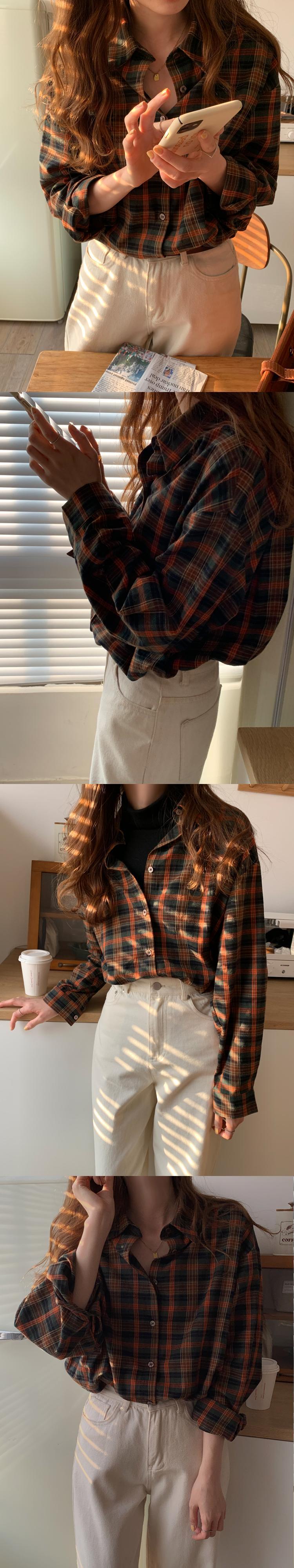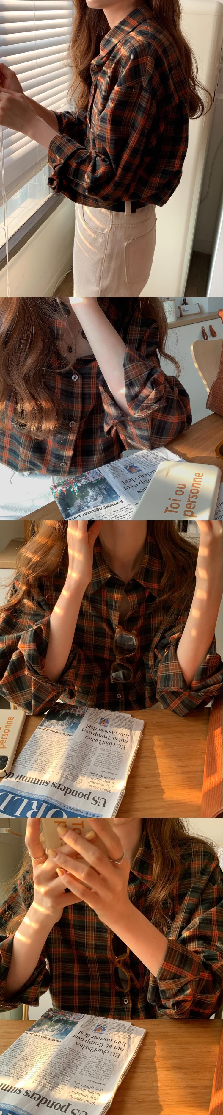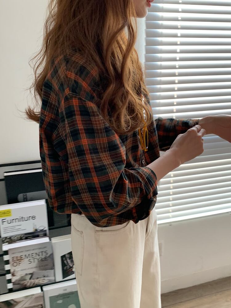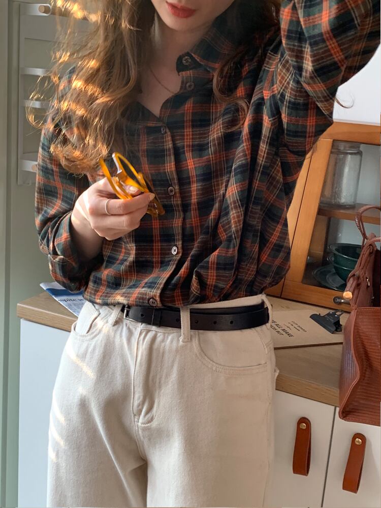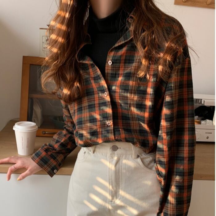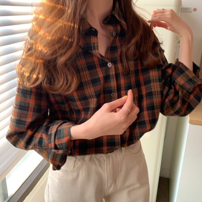 スタンダードスタイル格子柄シャツ レディースオータムウィンタージャケット トップス ロング レトロ 秋物 冬物 モンロー6199096038