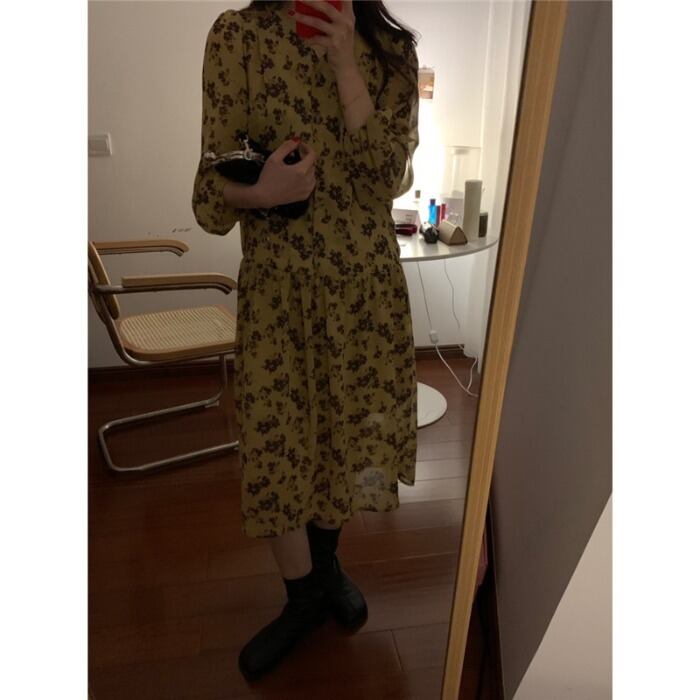 スタンダードロングスカート フローラルドレス オータムウィンター レトロ 秋物 冬物 花柄 モンロー37968673294