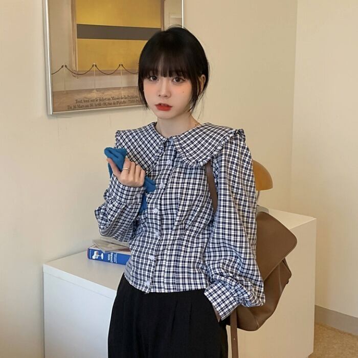 カラー格子柄シャツ オータムウィンタートップス ショートジャケット ロング 秋物 冬物 モンロー30384204316