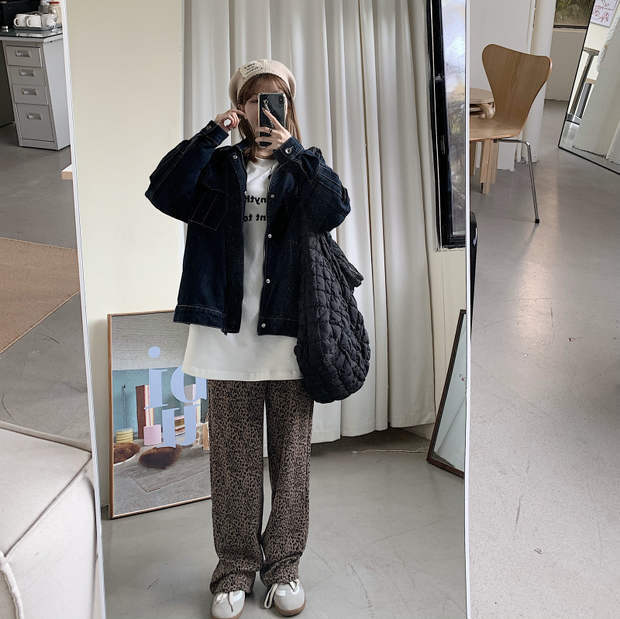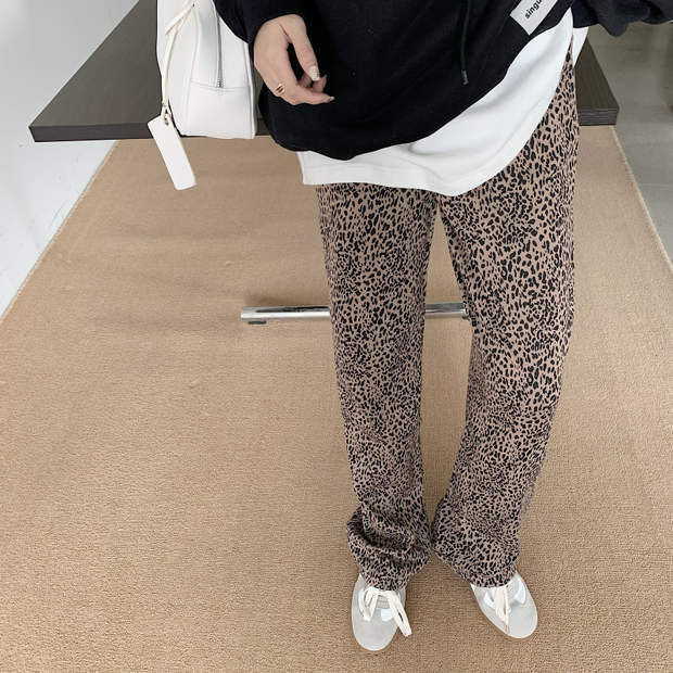 レオパードプリント柄パンツ ルーズカジュアル薄手ハイウェストオータムウィンター 秋物 冬物 モンロー53479380684