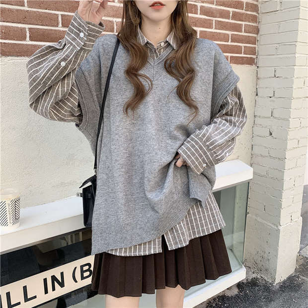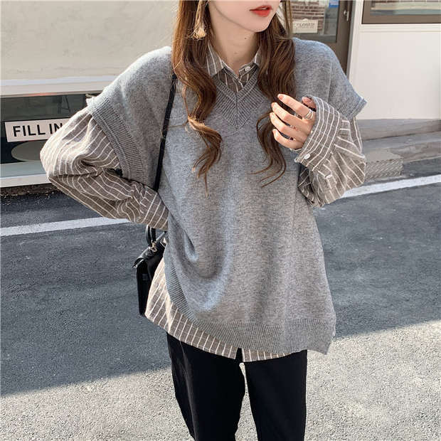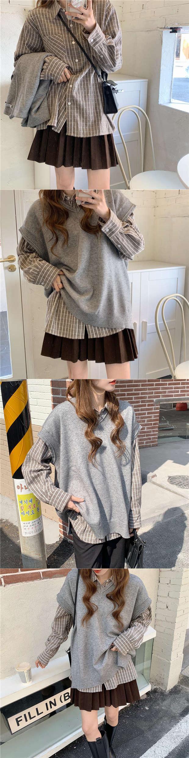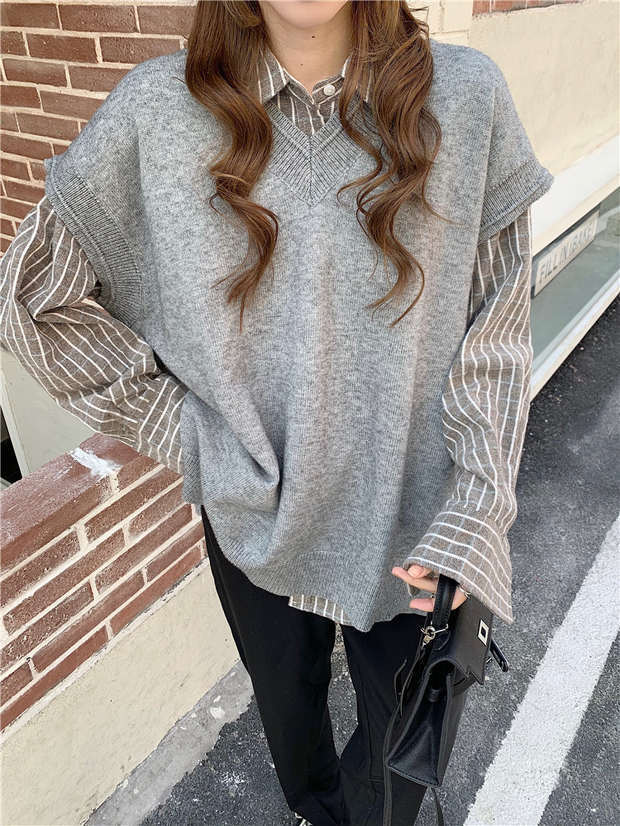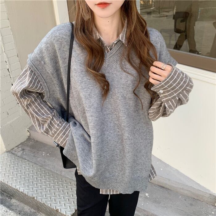 Vネックニットレディースルーズセーター オータムウィンターノースリーブトップス 秋物 冬物 モンロー42873934490