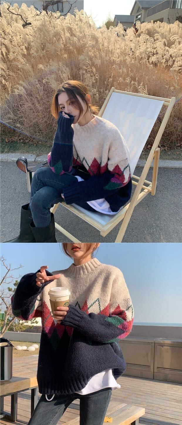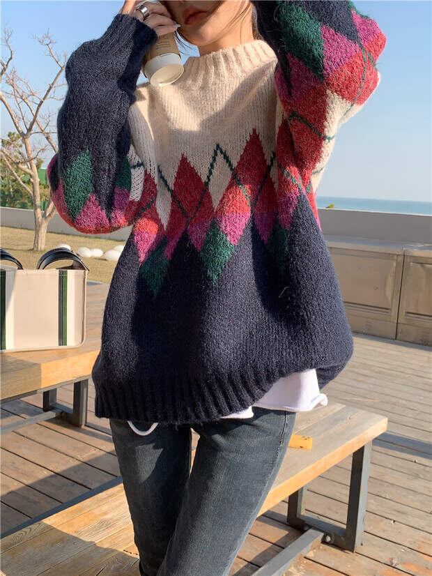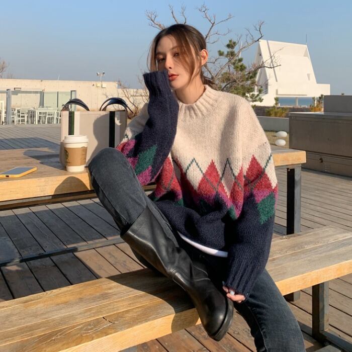 スタンダードスタイルセーター ルーズニットウィンタートップス レトロ 冬物 モンロー14582405350
