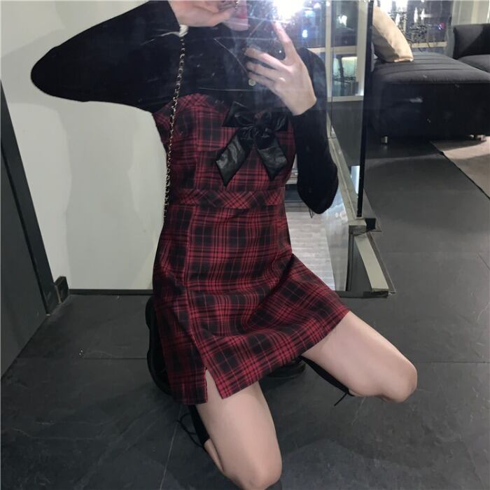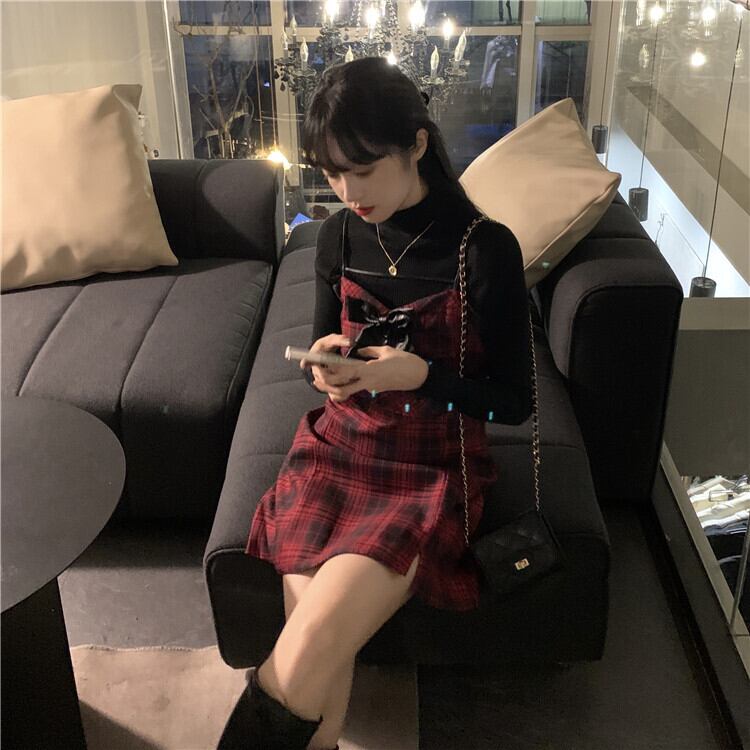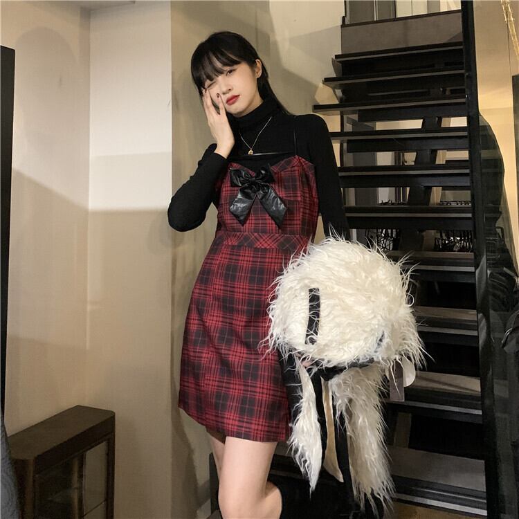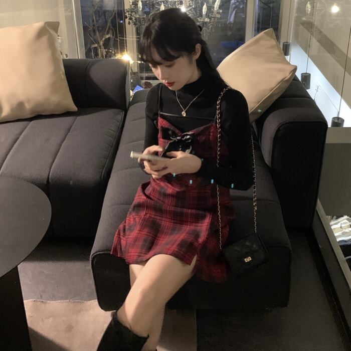 格子柄ドレス レッドスカート ウィンター 冬物 モンロー94179077310