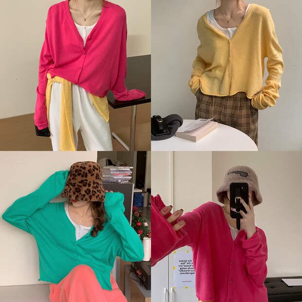 セーター レディースルーズスタイルVネックカーディガンオータムウィンターショートニットトップス コート 秋物 冬物 モンロー70892447728