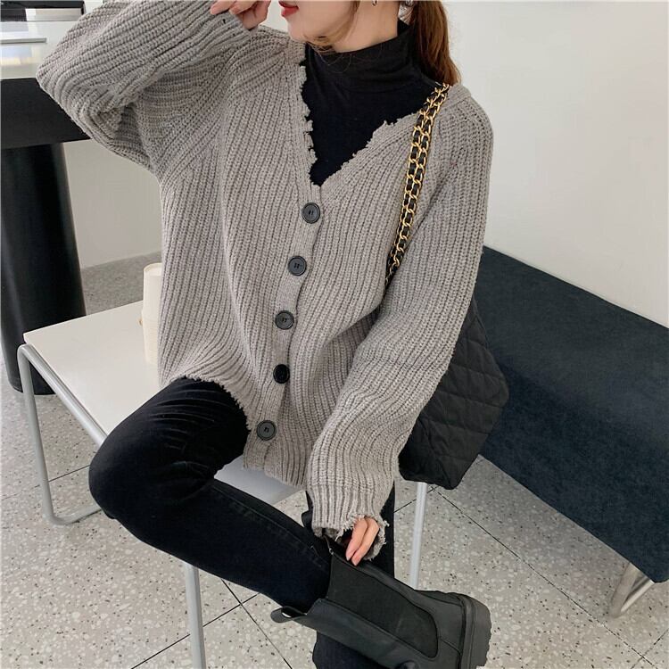 Vネックセーター コート レディースウィンタールーズスタイルニットトップス カーディガン 冬物 モンロー58707287145