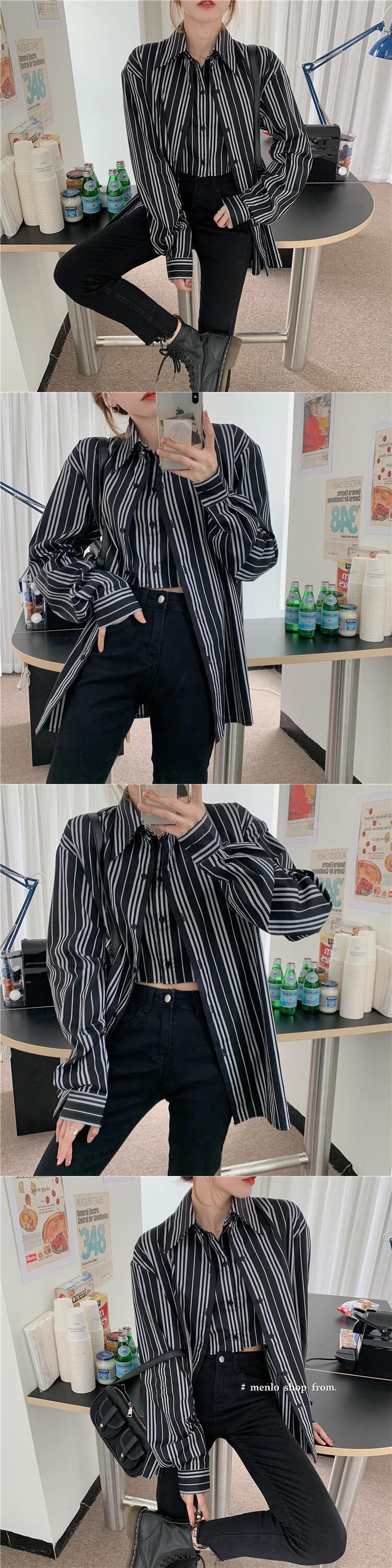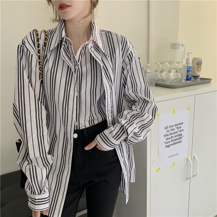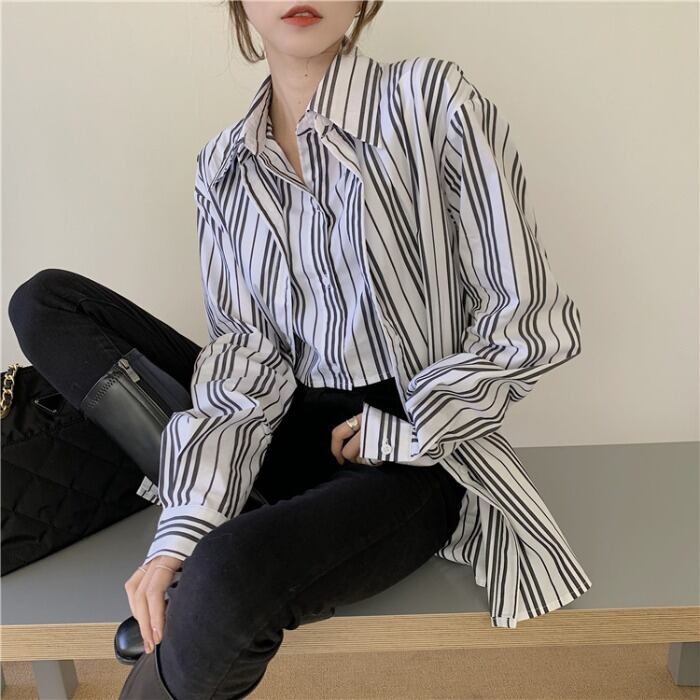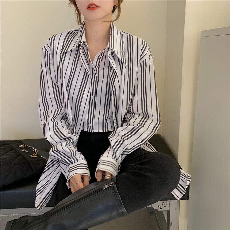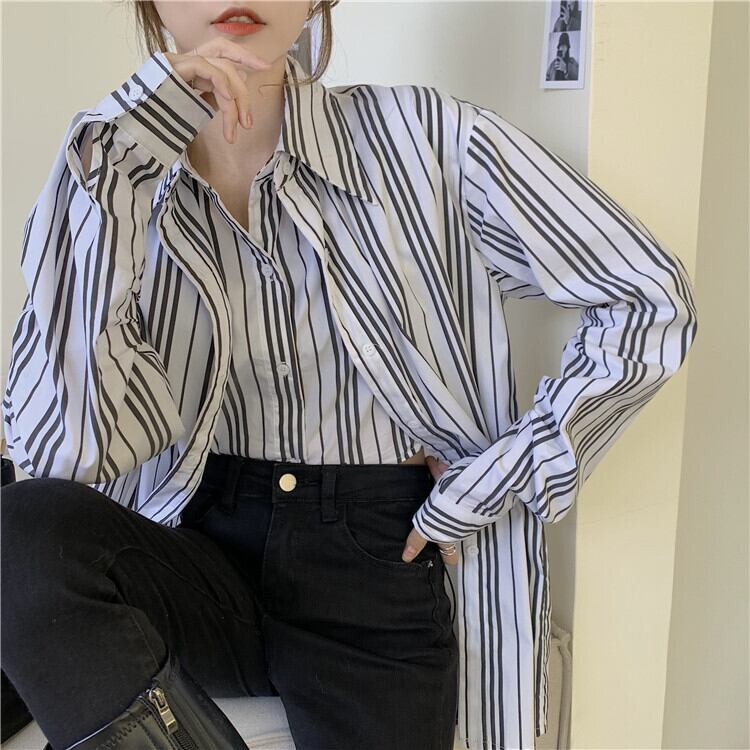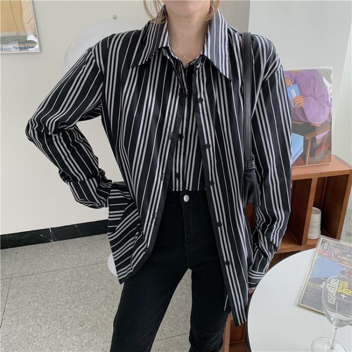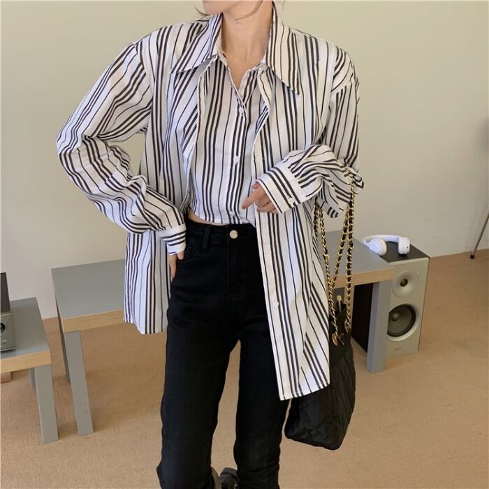 スタンダードトップス レディーススタイルストライプシャツ オータムウィンタージャケット ロング レトロ 秋物 冬物 モンロー3505467945