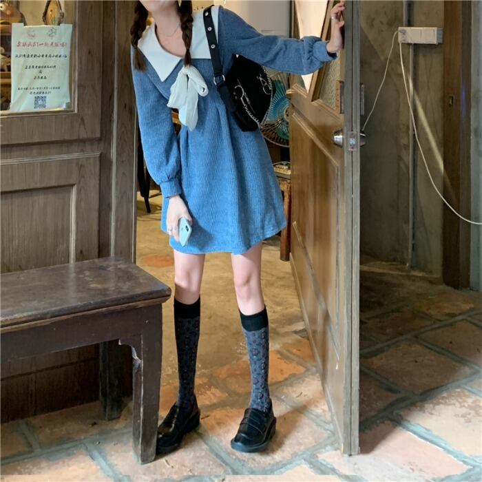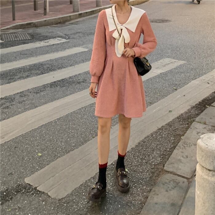 スタンダードコーデュロイドレス オータムウィンタースカート ブラックショート レトロ 秋物 冬物 モンロー26929284253