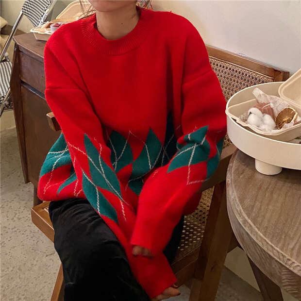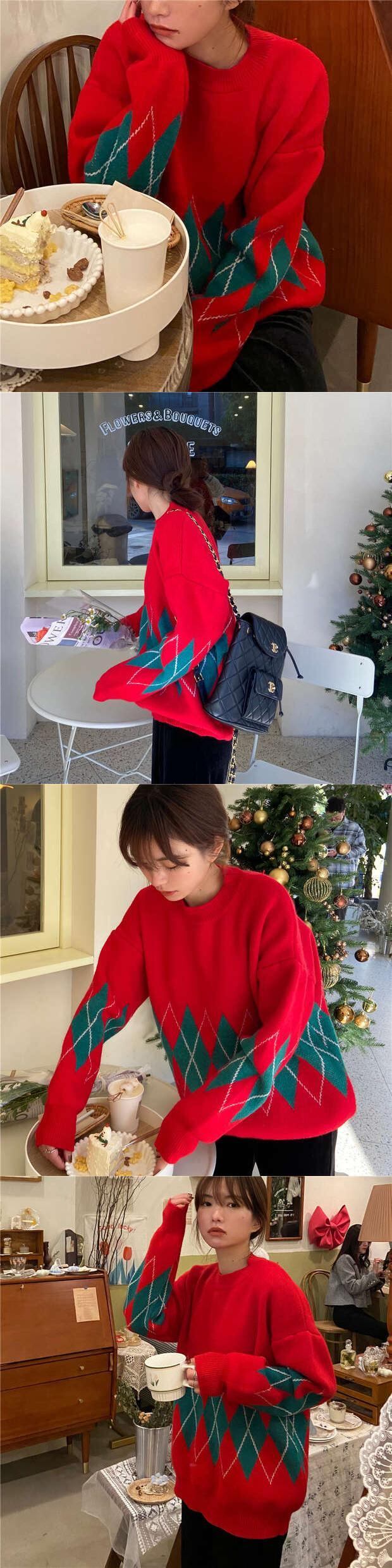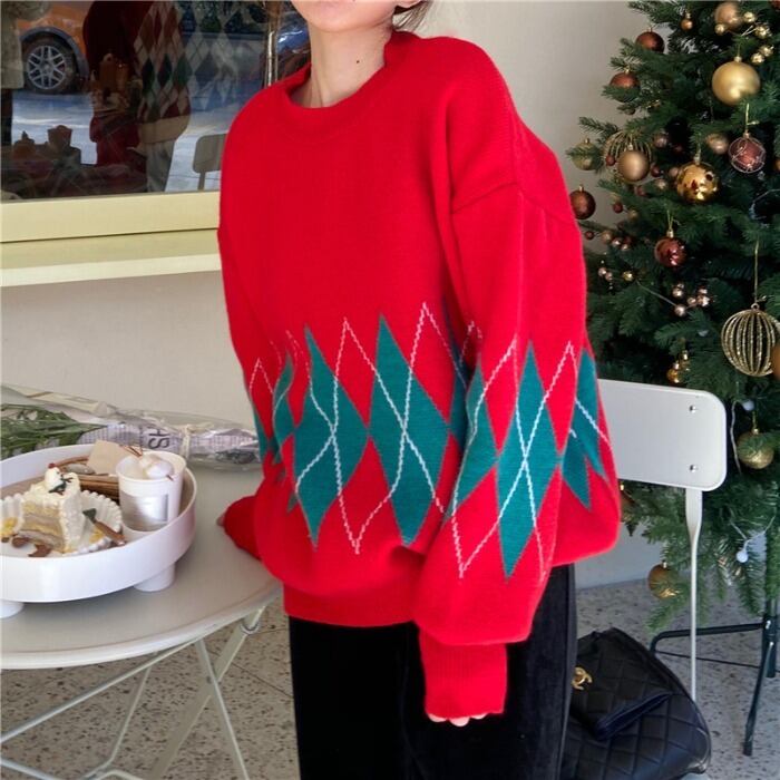 レッドセーター レディースルーズニットヴィンテージトップス コート オータム 秋物 ウィンター 冬物 ビンテージ モンロー16523260909