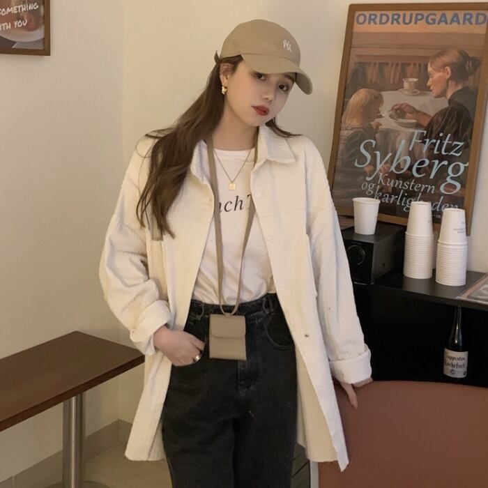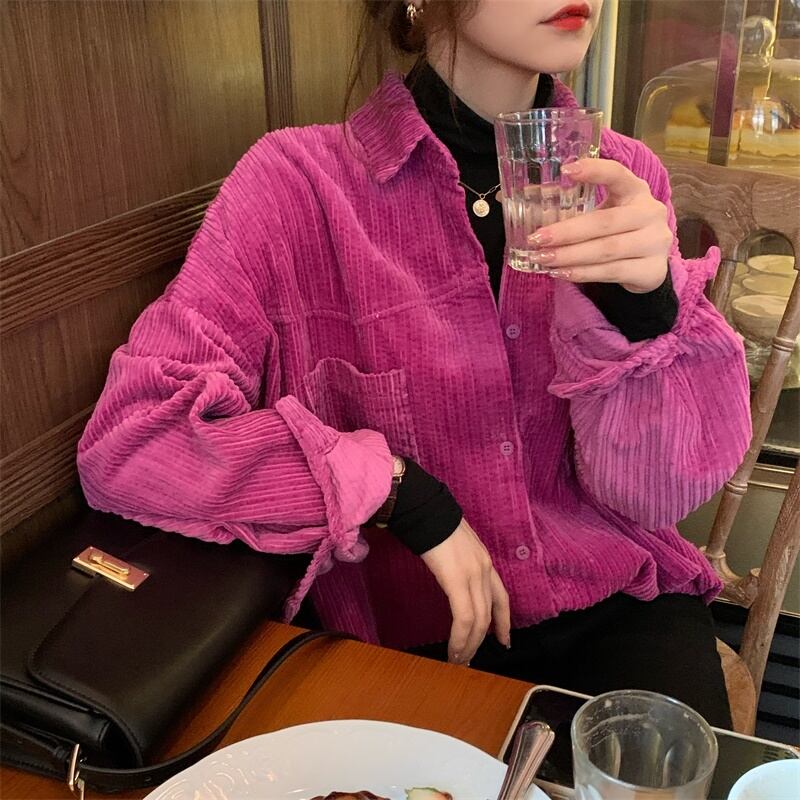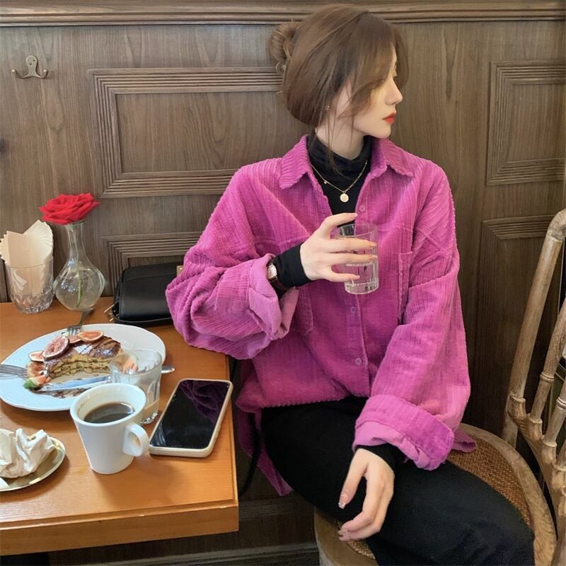 シャツ ルーズオータムウィンタートップス コート ロング レッド 秋物 冬物 モンロー5575399702
