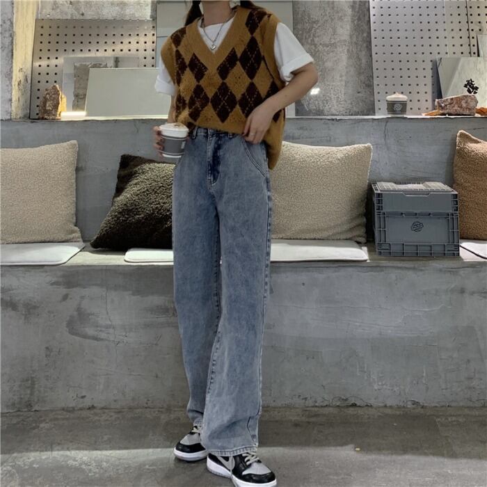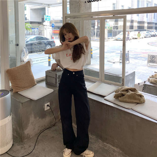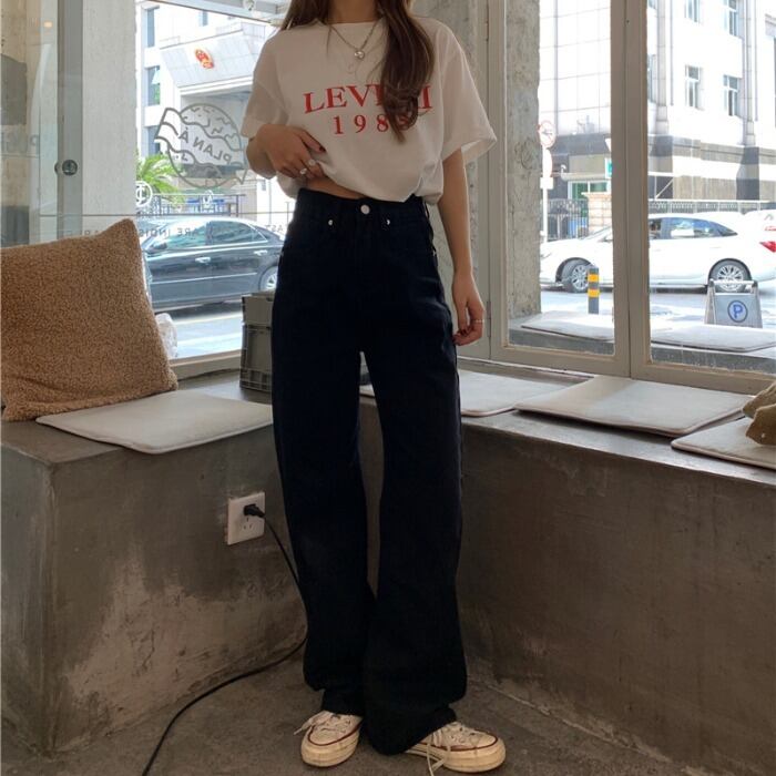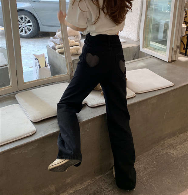 ブラックジーンズ オータムウィンターハイウェストウェストパンツ ルーズ薄手 秋物 冬物 モンロー86522307521