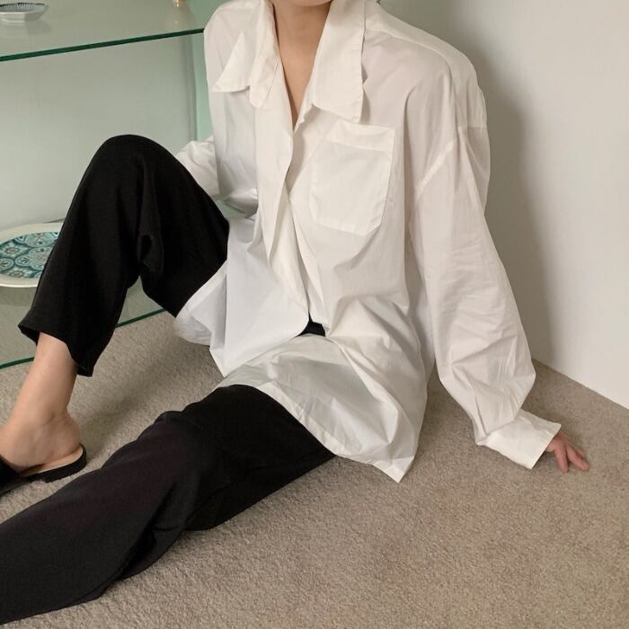 ホワイトシャツ オータムウィンタートップス スタンダードスタイルルーズ ロング レトロ 秋物 冬物 モンロー46305536009