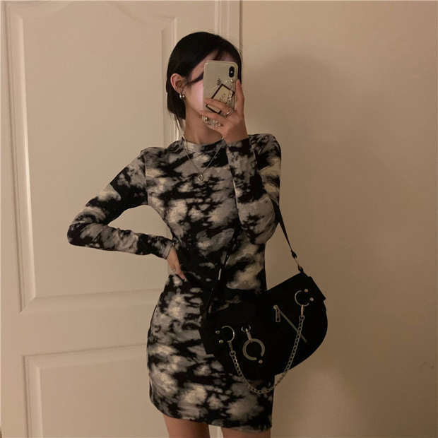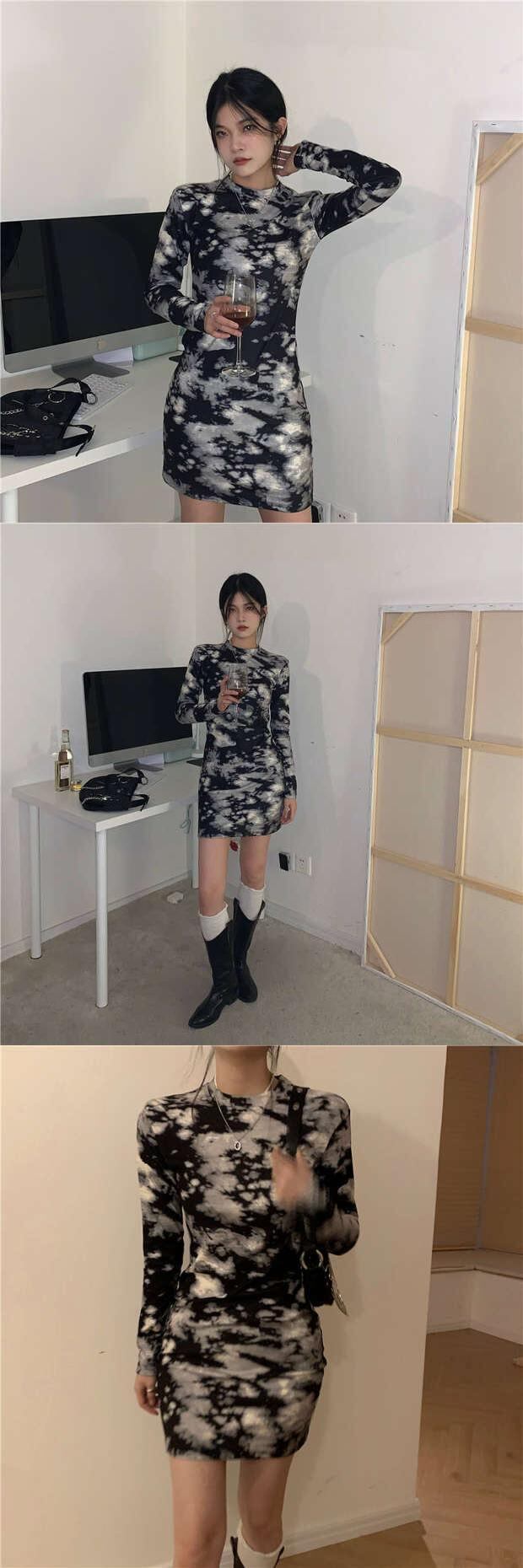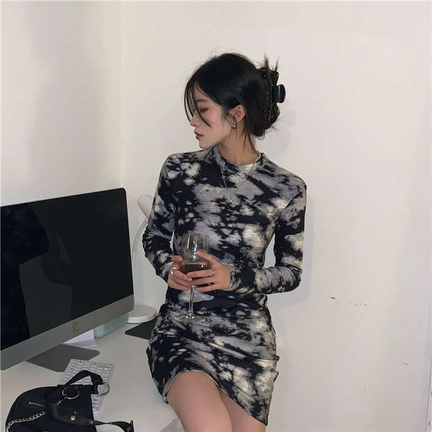 スタンダードニットドレス スカート オータムウィンターショート薄手 レトロ 秋物 冬物 モンロー69986799802