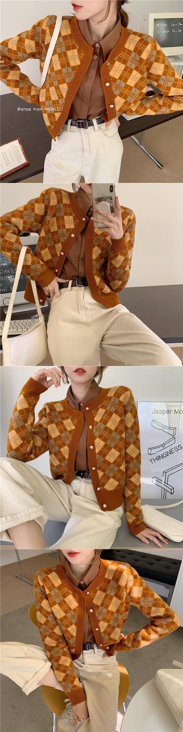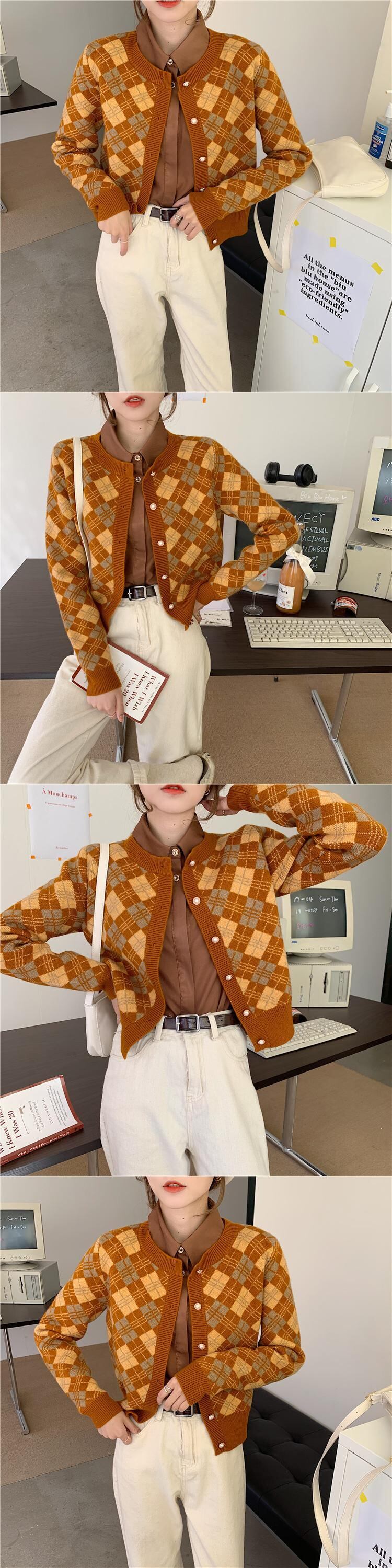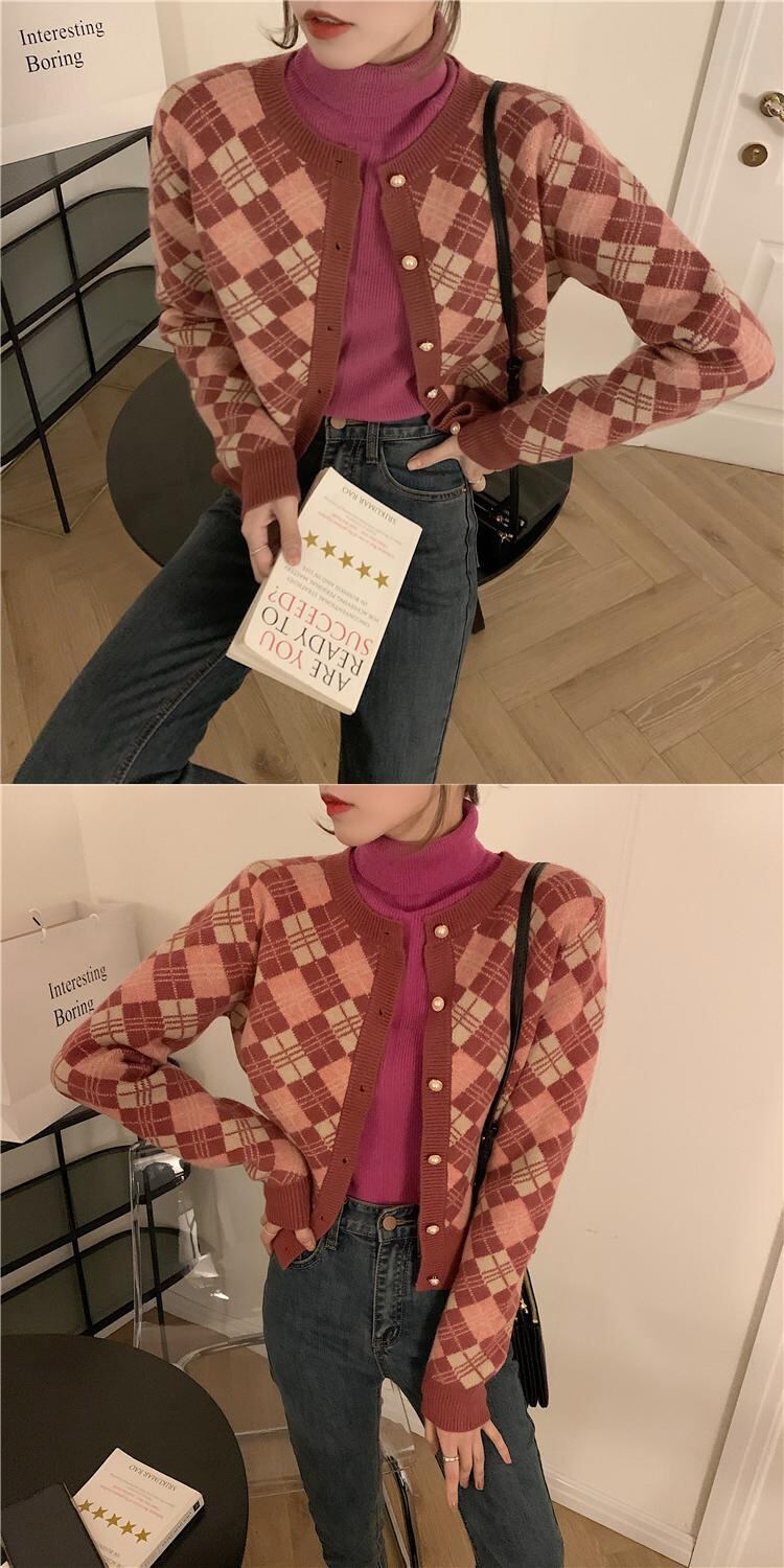 格子柄カーディガンセーター ルーズニットジャケット ウィンタースタンダードショートトップス レトロ 冬物 モンロー78087895617