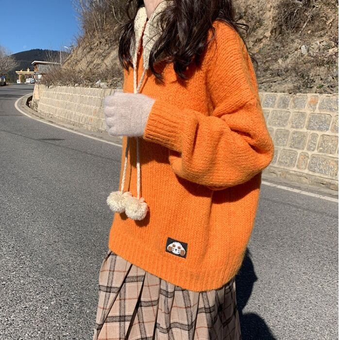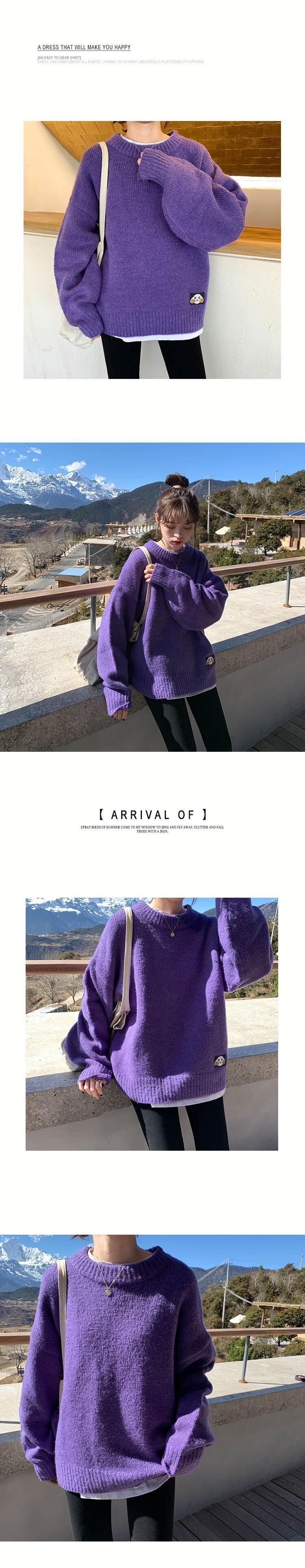セーター レディーススタイルオータムウィンターニットルーズトップス コート 秋物 冬物 パープル モンロー30573648488