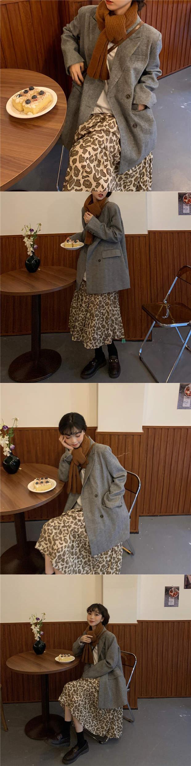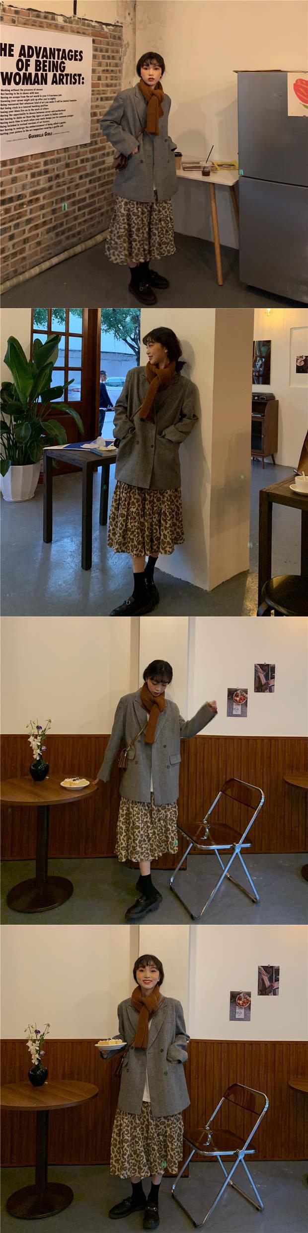 色:ヘンプグレーのスーツ,ヒョウスカート