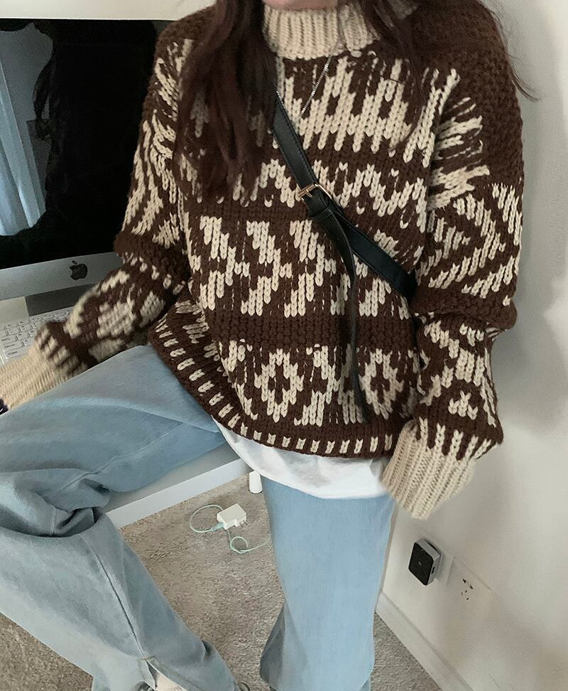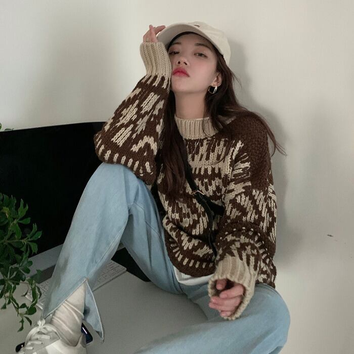 スタンダードセーター レディースルーズトップス オータムウィンターニットコート ロング レトロ 秋物 冬物 モンロー37769104490