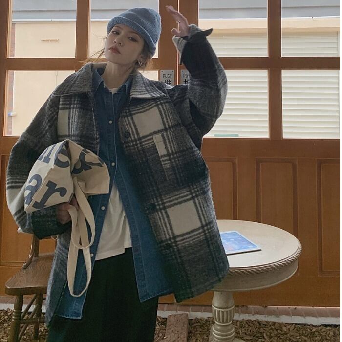 格子柄コート オータムウィンタートップス 秋物 冬物 モンロー47951110606