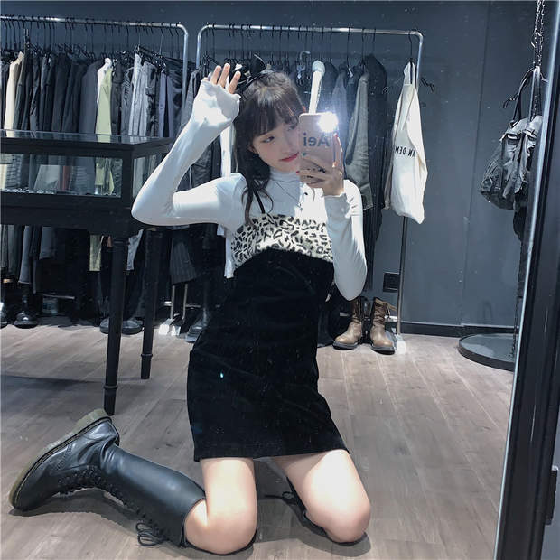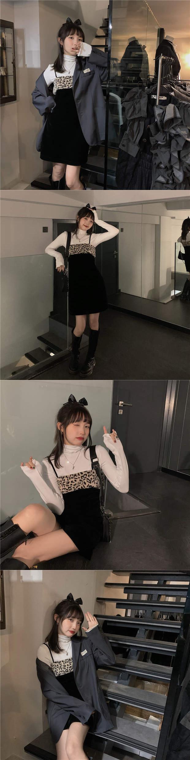 スタンダードドレス オータムウィンタースカート レオパードプリント柄ブラックショート レトロ 秋物 冬物 モンロー70398127203