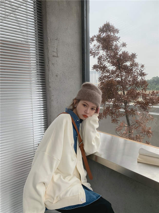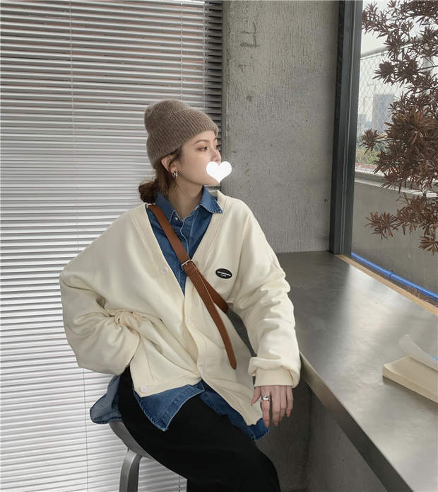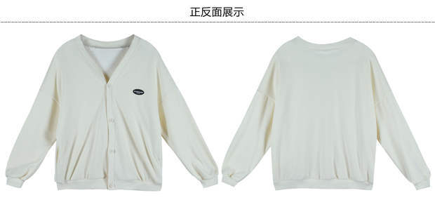 ホワイトジャケット オータムウィンターベルベットVネックカーディガンルーズトップス 秋物 冬物 モンロー13340408318