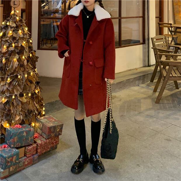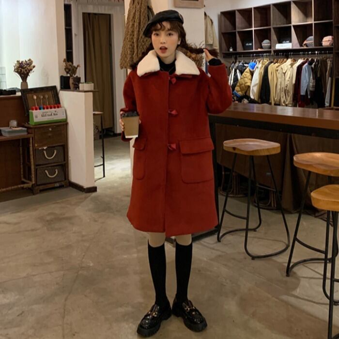 ウィンターコート レディーススタイルロングレッドトップス 冬物 モンロー48464912360