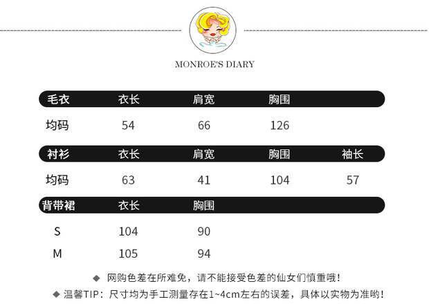 色:ピンクのセーター,シャツ,ストラップスカートSサイズ,ストラップスカートMサイズ