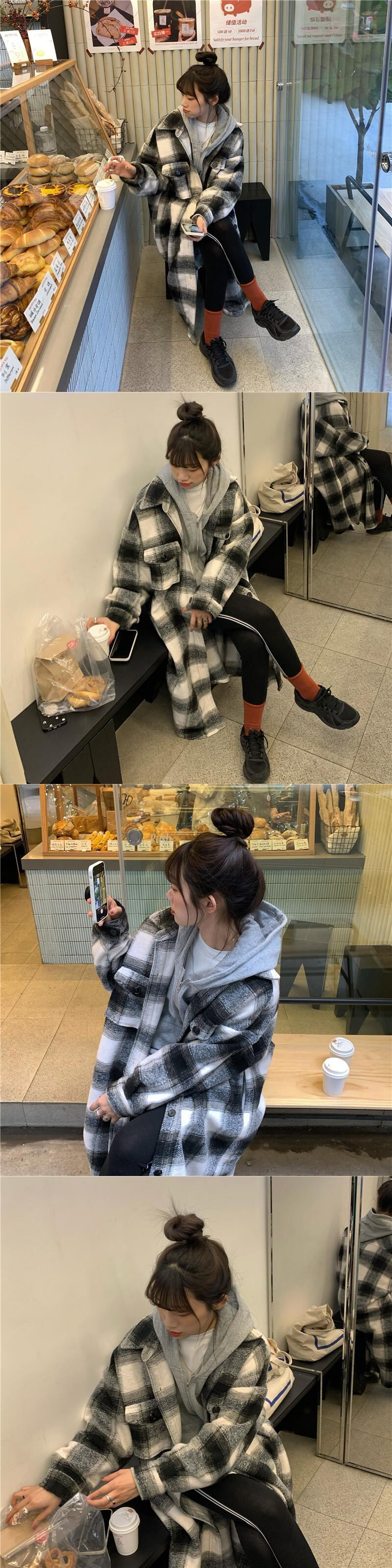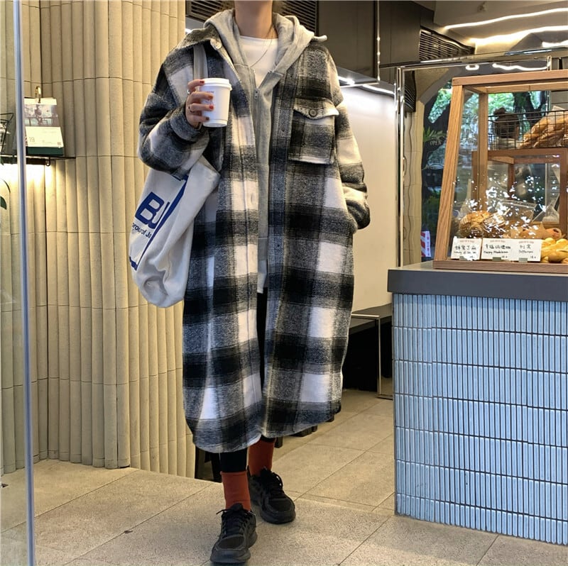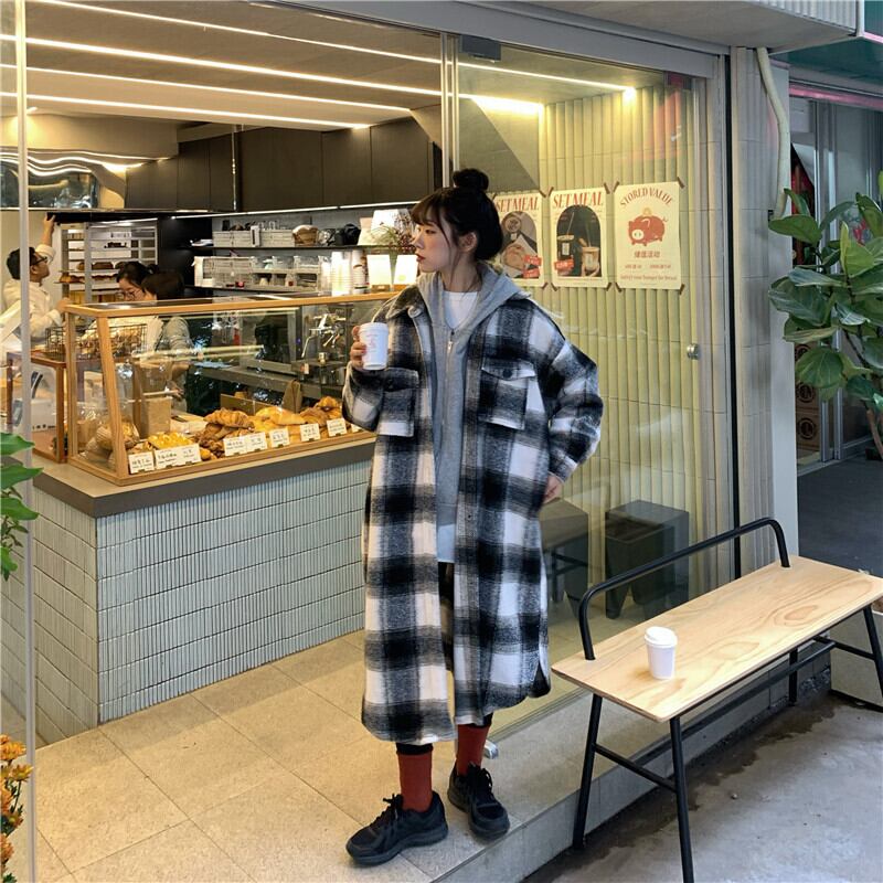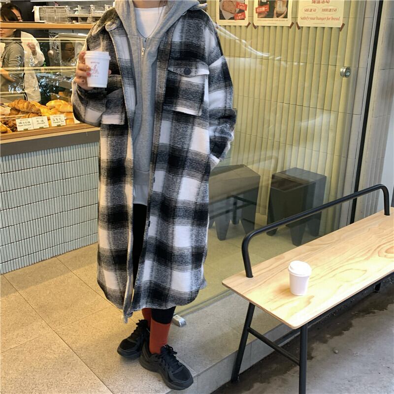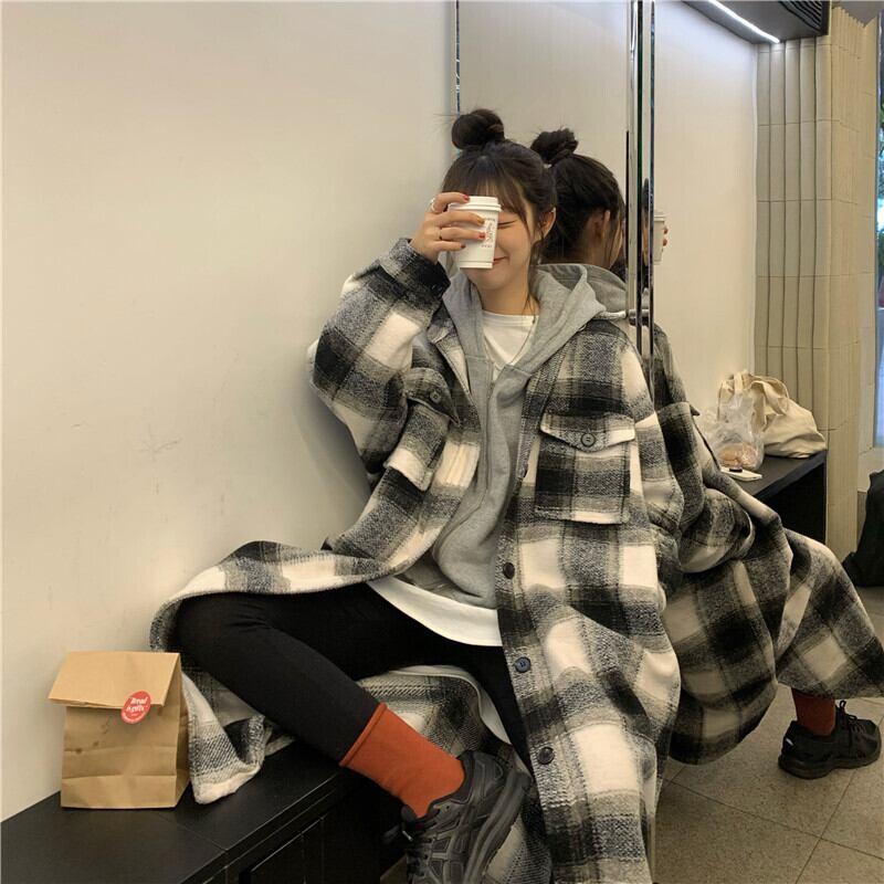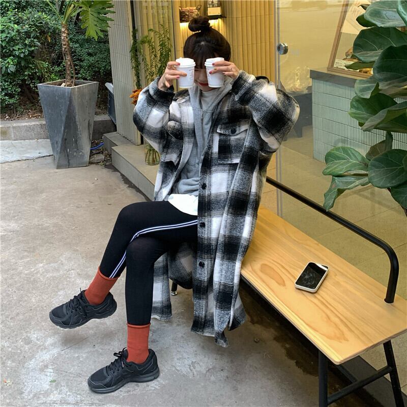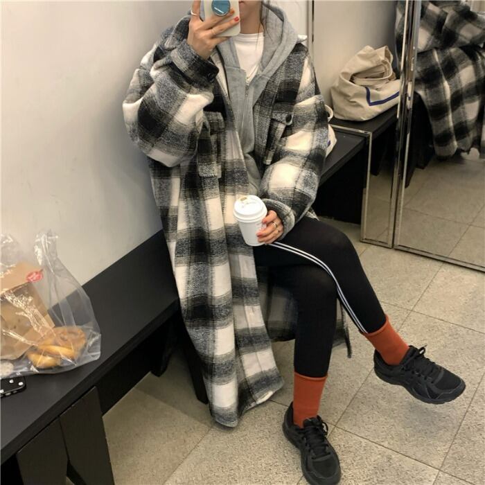 スタンダード格子柄シャツ ジャケット オータムウィンタートップス ロング レトロ 秋物 冬物 モンロー11617372528
