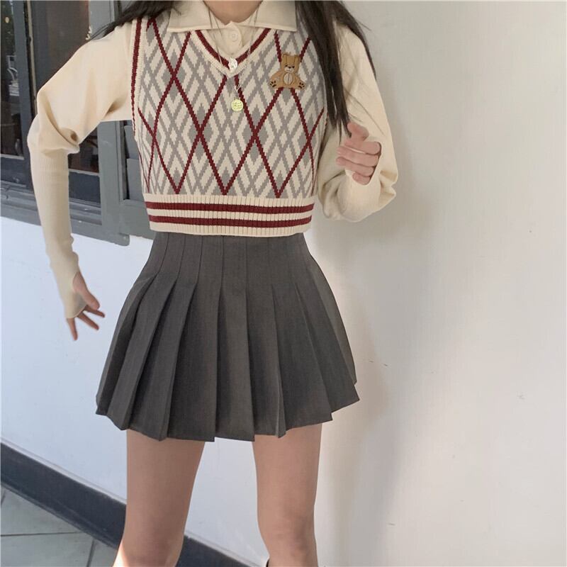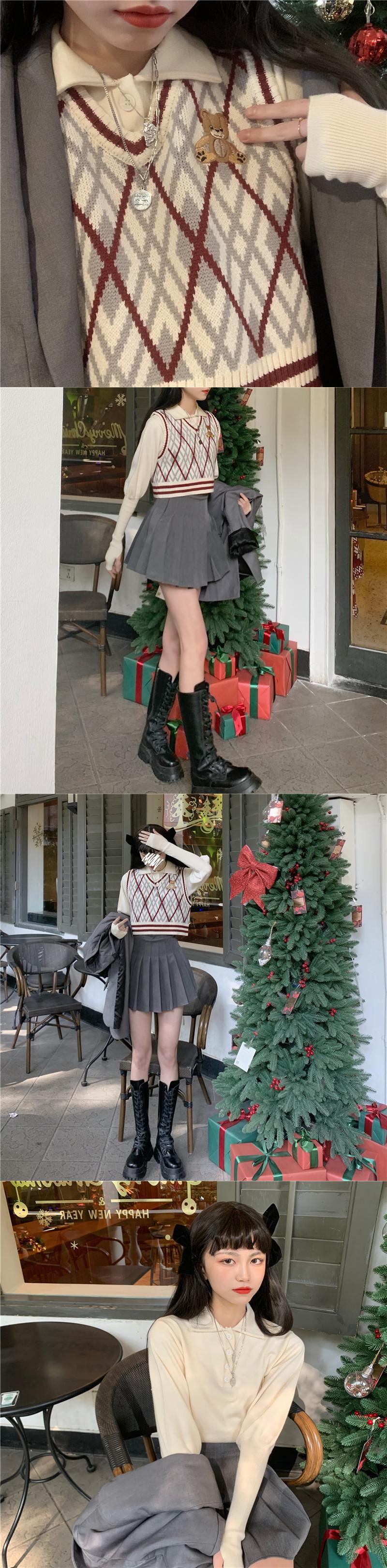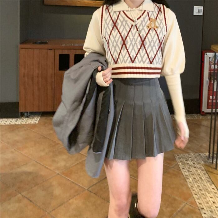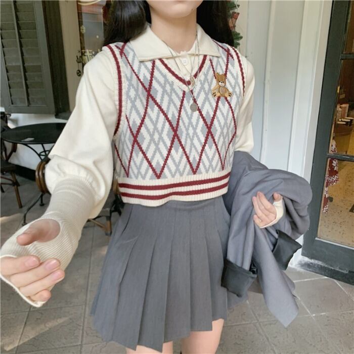 色:ベアベスト,ベースセーター,グレープリーツスカート