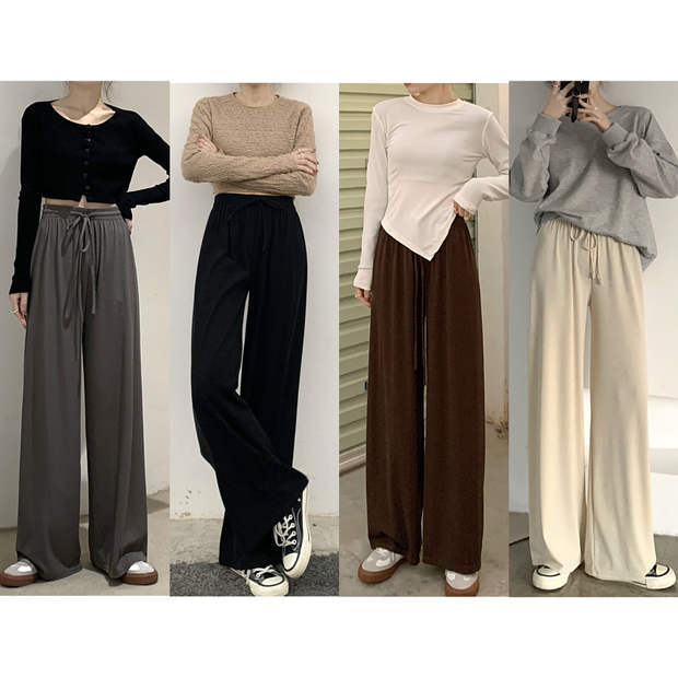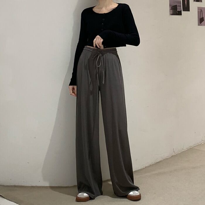 カジュアルパンツ ハイウェストウェストワイドレッグスリムオータムウィンタールーズ 秋物 冬物 ワイドパンツ モンロー77618692006